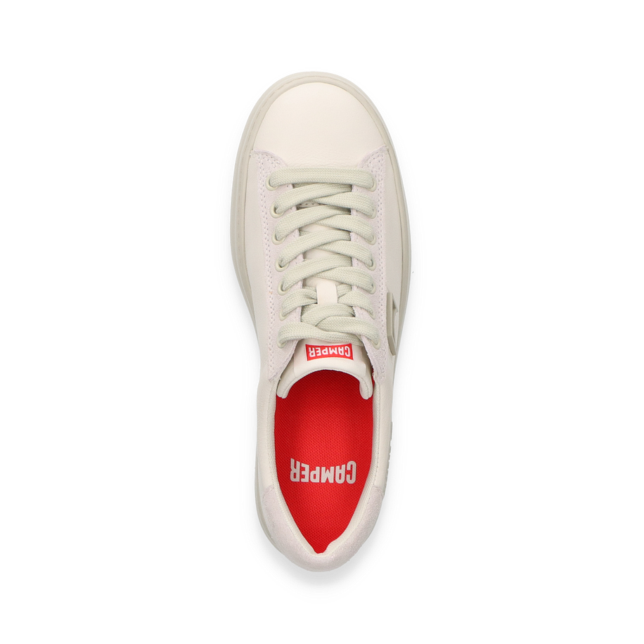 Der Camper RUNNER FOUR Sneaker für Damen präsentiert sich in einem eleganten Weiß, das zeitlose Eleganz und Vielseitigkeit ausstrahlt. Das Obermaterial aus hochwertigem Leder verleiht dem Schuh eine edle Optik, während die sorgfältig gestalteten Details, wie die dezente Logo-Applikation und die feine Nahtführung, den stilvollen Look unterstreichen. Die flache Silhouette und die klare Linienführung machen diesen Sneaker zu einem perfekten Begleiter für den Alltag und besondere Anlässe.