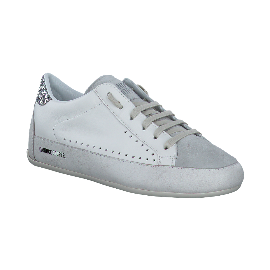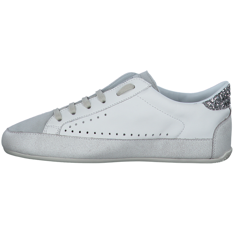 Entdecken Sie den Dafne Sneaker von Candice Cooper, ein exquisites Modell für Damen. Dieser weiße Sneaker besticht durch seine hochwertige Verarbeitung und sein elegantes Design. Das Obermaterial, die Innensohle und das Futter sind aus feinstem Leder gefertigt, was für optimalen Komfort und Langlebigkeit sorgt. Die Sohle aus Gummi bietet hervorragende Traktion und Stabilität. Mit einer Absatzhöhe von 3 cm verleiht dieser Sneaker Ihnen eine dezente Erhöhung. Ein besonderes Highlight sind die silbernen Pailletten an der Ferse, die einen Hauch von Glamour verleihen. Der Dafne Sneaker von Candice Cooper - ein Must-Have für jede stilbewusste Frau.