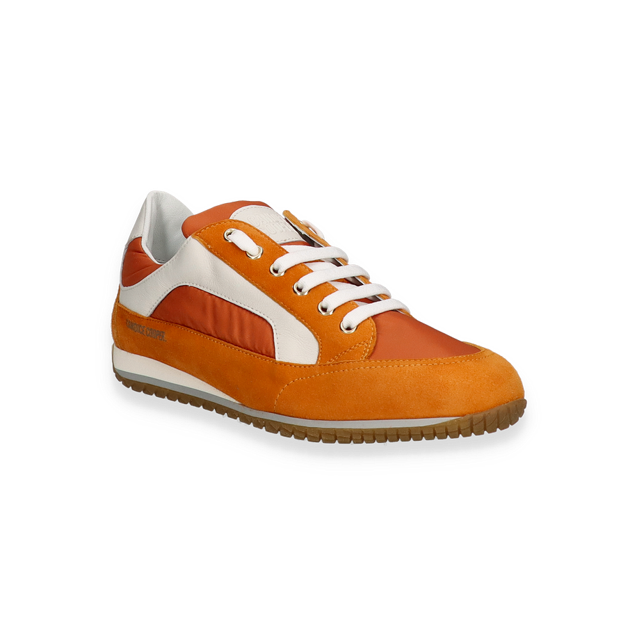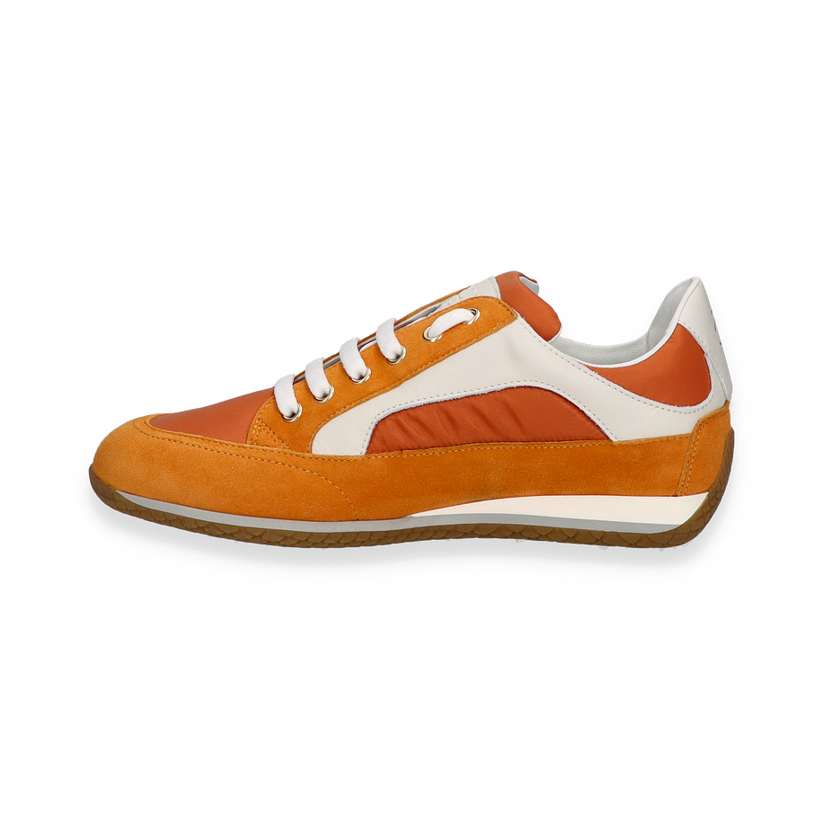 Entdecken Sie die stilvollen Schnürschuhe für Damen von Candice Cooper in einem lebendigen Orangeton. Diese Schuhe vereinen Eleganz und Komfort mit einem modernen Design, das durch die Kombination von Leder und Textil im Obermaterial besticht. Die kontrastierenden weißen Details und die sorgfältig gearbeiteten Nähte verleihen dem Schuh eine einzigartige Ästhetik, die sowohl für den Alltag als auch für besondere Anlässe geeignet ist.