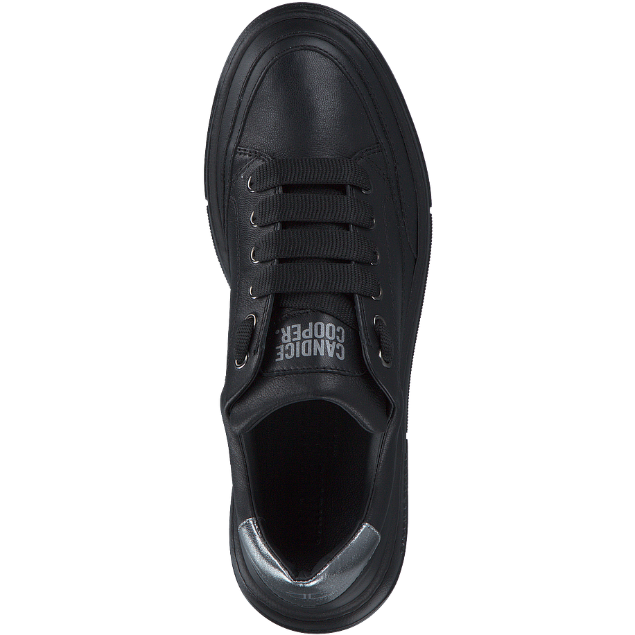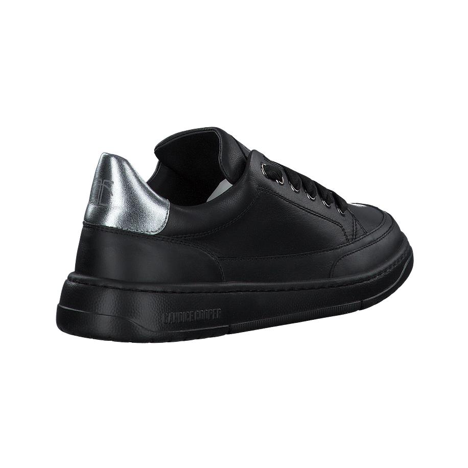 Schlichte schwarze Sneaker mit tollem Hingucker - diese schicken Candice Cooper Sneaker für Damen sind eine tolle Wahl für alle, die sich sportiv und leger kleiden, dabei aber dennoch modern und angesagt wirken möchten. Das schwarze Leder der Schuhe verleiht dem Modell einen luxuriösen Charme, während der entspannte Schnitt einen angenhemen Tragekomfort fördert. Silberfarbene Patches aus Metallicleder zieren die Rückseiten der Schnürschuhe und sorgen so für einen modischen Hingucker im Alltag. Perfekt, um schlichten Freizeitlooks einen coolen Touch zu verleihen und Ihren cleanen, dabei aber auch femininen Stil zur Geltung zu bringen.