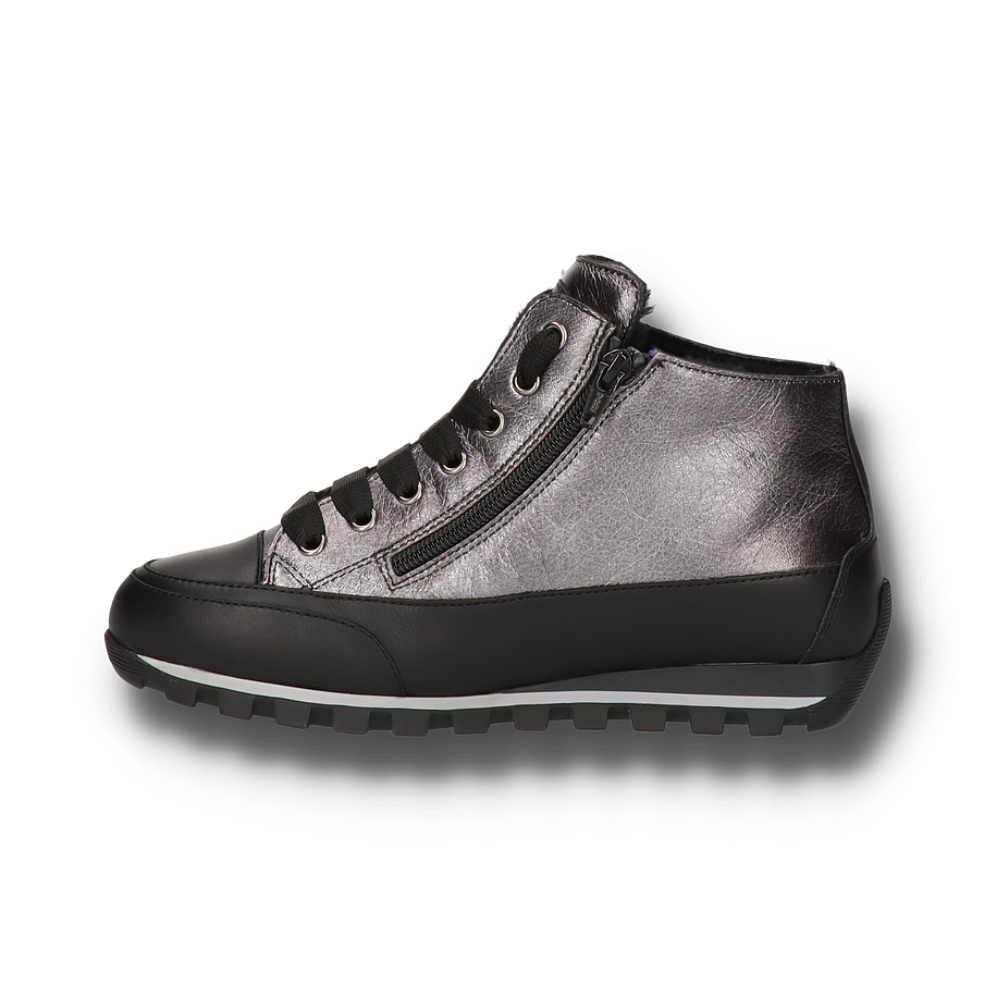 Der Candice Cooper Winterstiefel JANIS für Damen in dunkelgrau vereint stilvolle Eleganz mit funktionalem Design. Das Obermaterial aus Leder und die robuste Gummisohle bieten optimalen Halt und Langlebigkeit. Die seitliche Reißverschluss- und Schnürungskombination sorgt für eine perfekte Passform und erleichtert das An- und Ausziehen. Die dezente Farbgebung und das edle Finish machen diesen Stiefel zu einem vielseitigen Begleiter für die kalte Jahreszeit. Der JANIS Winterstiefel besticht durch sein warmes Innenfutter aus Lammfell, das für angenehme Wärme und Komfort sorgt. Auch die Lammfell-Innensohle trägt zu einem behaglichen Tragegefühl bei. Mit einer Absatzhöhe von 4 cm bietet der Stiefel eine ideale Balance zwischen Eleganz und Bequemlichkeit. Die strapazierfähige Gummisohle gewährleistet sicheren Halt auf verschiedenen Untergründen. Perfekt für stilbewusste Damen, die auch im Winter nicht auf modische Akzente verzichten möchten.