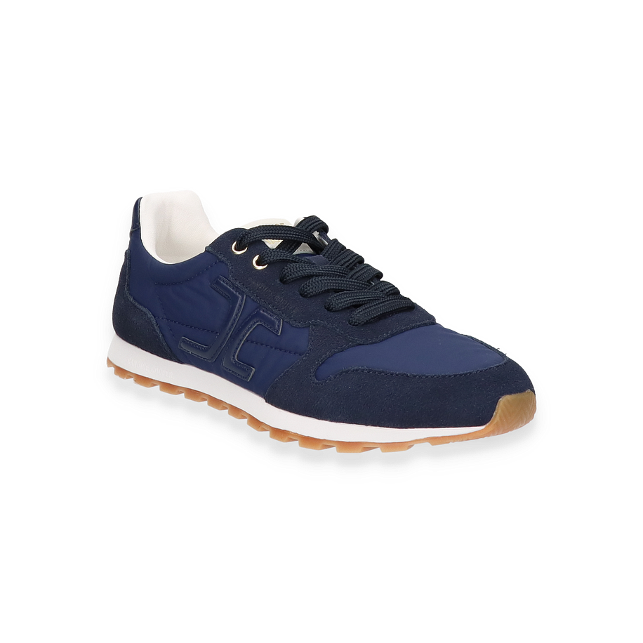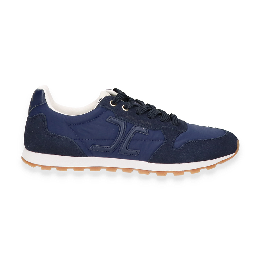 Der Candice Cooper Sneaker PLUME für Damen in elegantem Dunkelblau vereint Stil und Komfort. Das Obermaterial aus einer hochwertigen Kombination von Leder und Textil verleiht dem Schuh eine moderne und zugleich zeitlose Optik. Die dezente Farbgebung macht ihn vielseitig kombinierbar, während die sorgfältige Verarbeitung und die feinen Details für einen luxuriösen Look sorgen. Die Schnürung und die goldenen Ösen unterstreichen das edle Design und bieten eine individuelle Passform.
