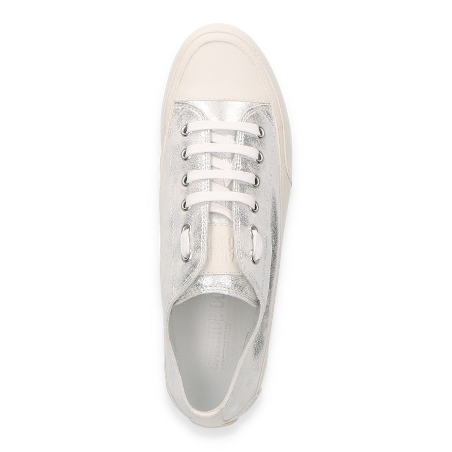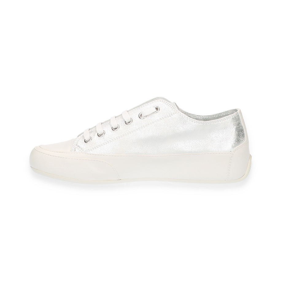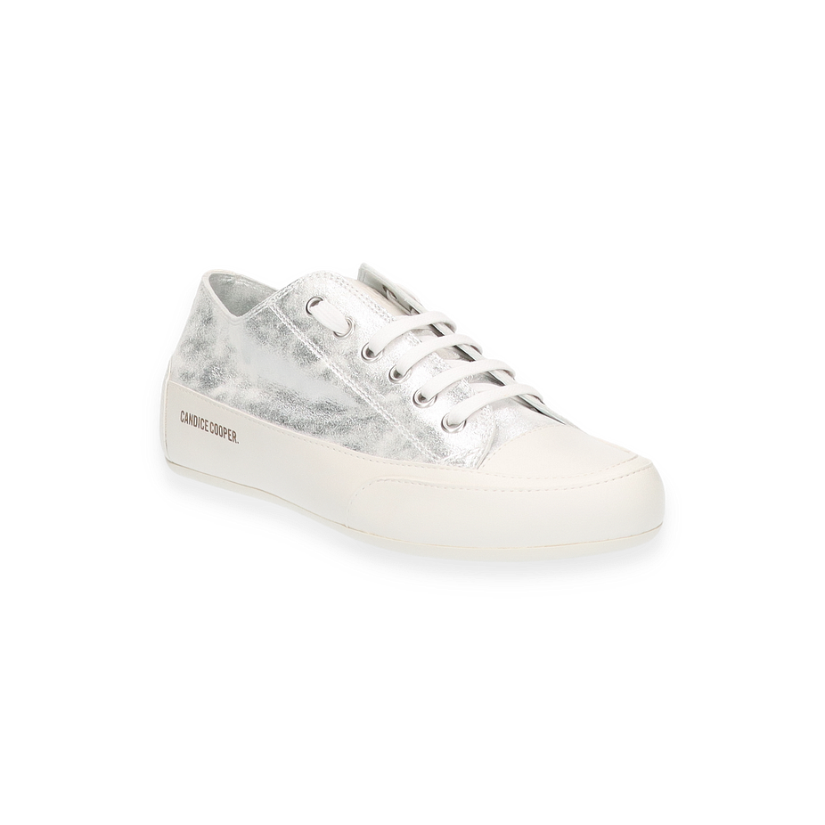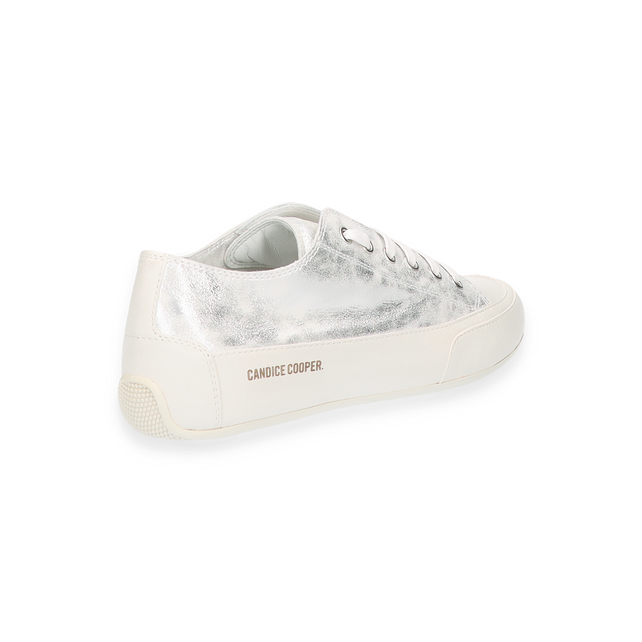 Entdecken Sie den eleganten Sneaker "Rock" von Candice Cooper für Damen. Dieser Schuh besticht durch sein silbernes Leder im trendigen Metallic-Look. Mit einer Absatzhöhe von 3 cm bietet er einen angenehmen Tragekomfort. Das Obermaterial, das Futter und die Innensohle sind aus hochwertigem Leder gefertigt, während die Sohle aus robustem Gummi besteht. Dieser Sneaker vereint Stil und Komfort und ist die perfekte Ergänzung für jede Garderobe. Erleben Sie den Luxus von Candice Cooper mit dem Modell "Rock".