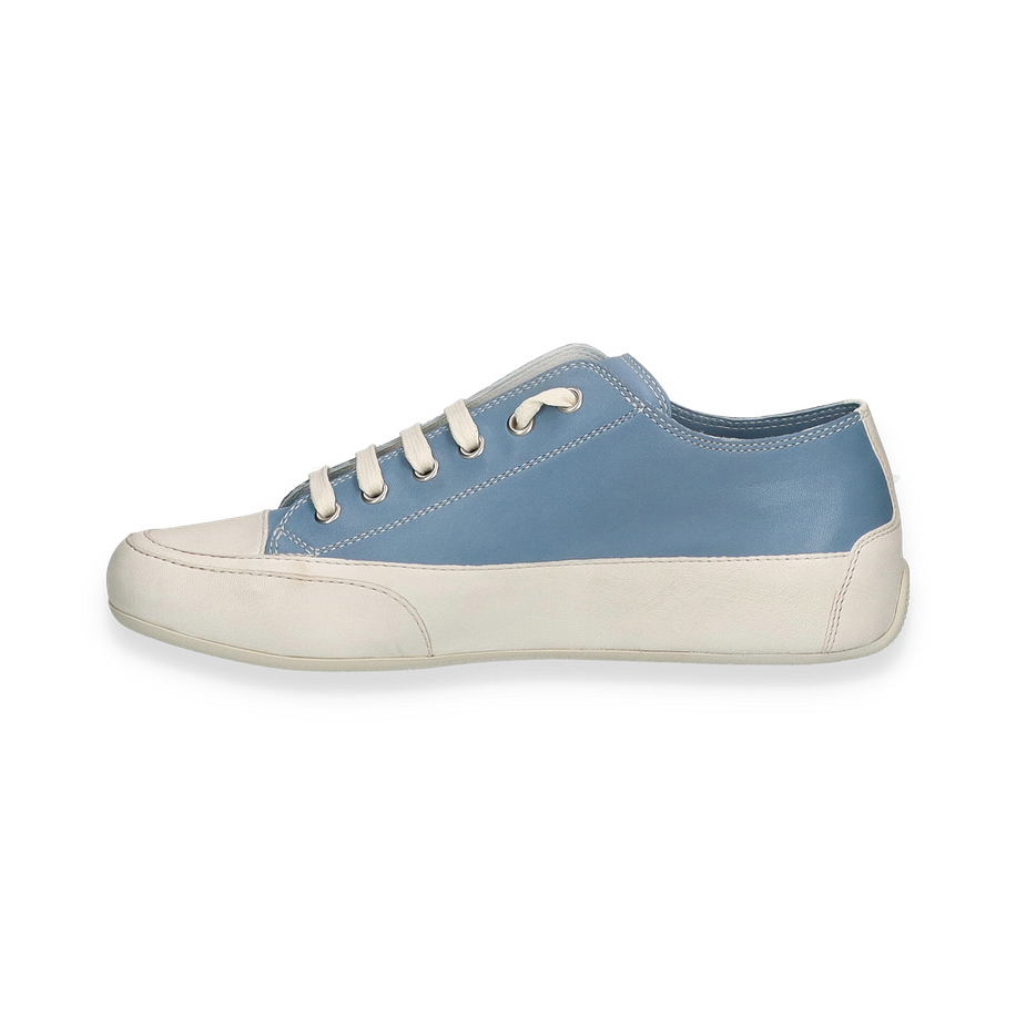 Die neue Saison startet in bewährter Candice Cooper Qualität. Dieser blaue Edel-Sneaker liegt absolut im Trend. Der Ringbesatz der Gummisohle ist aus hellem Leder gefertigt. Dieser Sneaker ist nicht nur Freizeitschuh, er ist auch bürotauglich und passt perfekt zur aktuellen Mode.