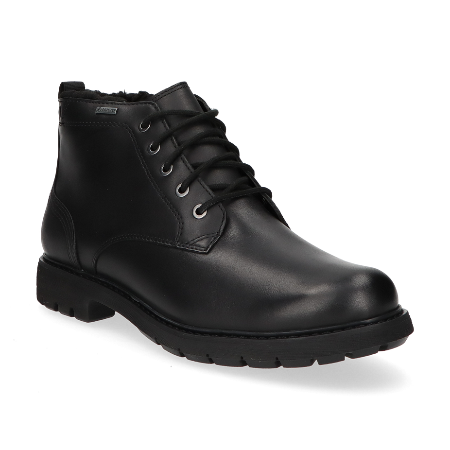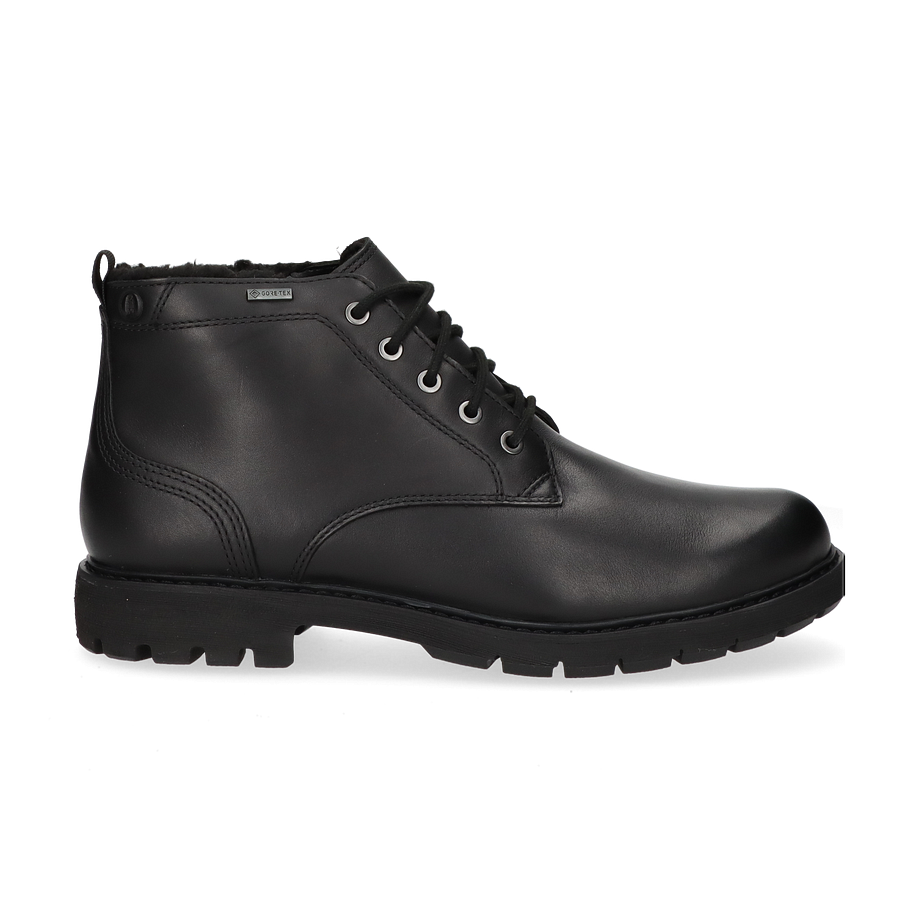 Der Clarks BATCOMBE MIX GTX Winterstiefel für Herren präsentiert sich in einem eleganten Schwarz und besticht durch sein robustes Design. Das Obermaterial aus hochwertigem Leder verleiht dem Schuh eine edle Optik, während die sorgfältige Verarbeitung und die stabilen Schnürsenkel für eine perfekte Passform sorgen. Die profilierte Gummisohle bietet hervorragenden Halt und ist ideal für winterliche Bedingungen geeignet. Der Schuh ist mit einem warmen Futter ausgestattet, das für angenehme Wärme an kalten Tagen sorgt. Der BATCOMBE MIX GTX verfügt über eine Absatzhöhe von 3 cm, die einen komfortablen Stand gewährleistet. Das Innenmaterial besteht aus Textil, das für ein angenehmes Tragegefühl sorgt. Die Innensohle kombiniert Textil und sonstige Materialien, um optimalen Komfort zu bieten. Dank der Gummisohle ist der Schuh besonders rutschfest und langlebig. Dieser Winterstiefel von Clarks ist die perfekte Wahl für stilbewusste Herren, die auch bei kaltem Wetter nicht auf Eleganz verzichten möchten.