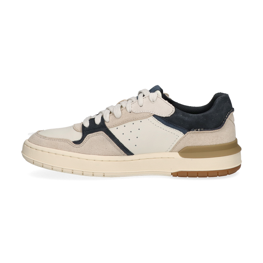 Der COURT LITE2 LO Sneaker von Clarks präsentiert sich in einem stilvollen Weiß/Blau-Design, das sowohl sportlich als auch elegant wirkt. Die Kombination aus Leder und Textil im Obermaterial verleiht dem Schuh eine hochwertige Optik und sorgt für Langlebigkeit. Die dezente Farbgebung wird durch feine Details und eine klare Linienführung ergänzt, die den Sneaker zu einem vielseitigen Begleiter für Herren machen. Der Schuh bietet eine moderne Ästhetik, die sich sowohl im Alltag als auch zu besonderen Anlässen hervorragend einfügt.