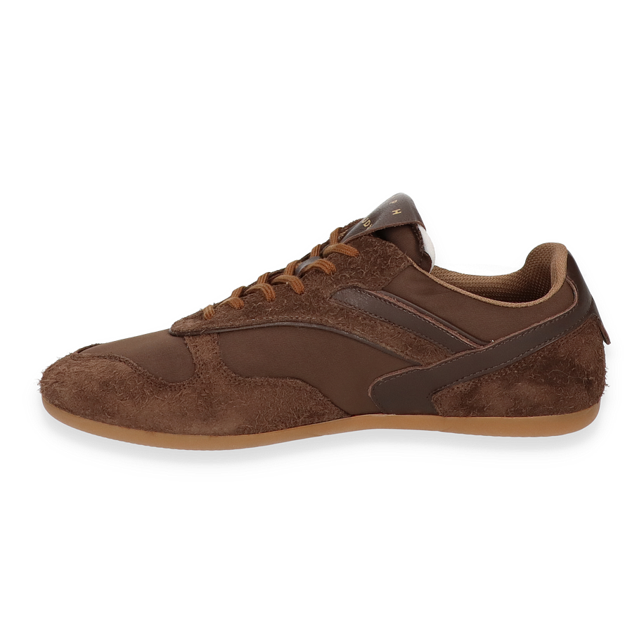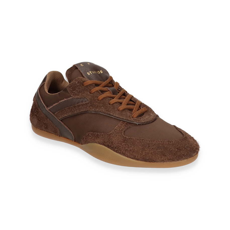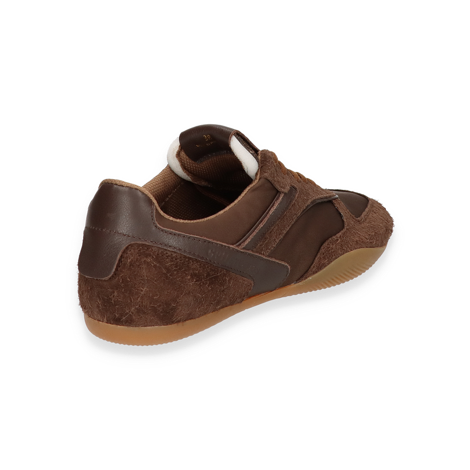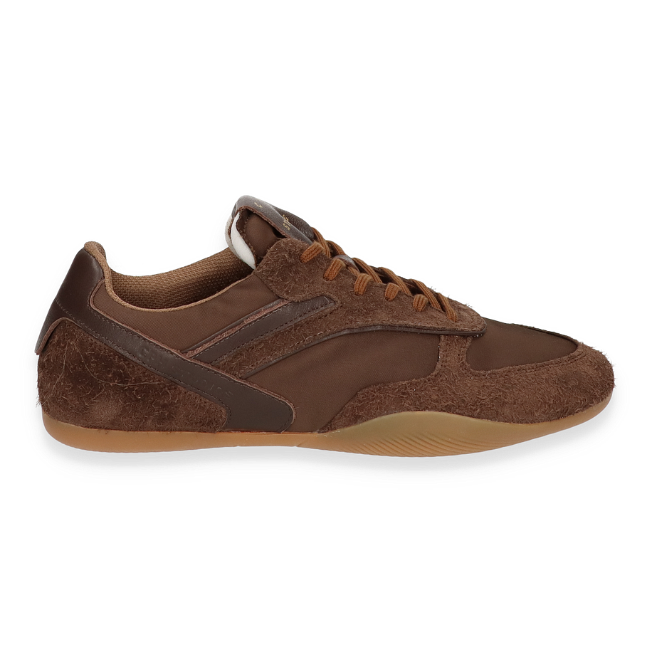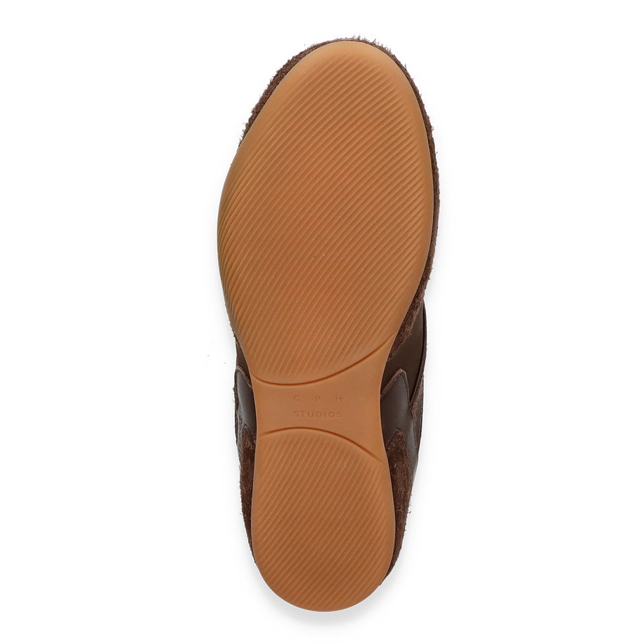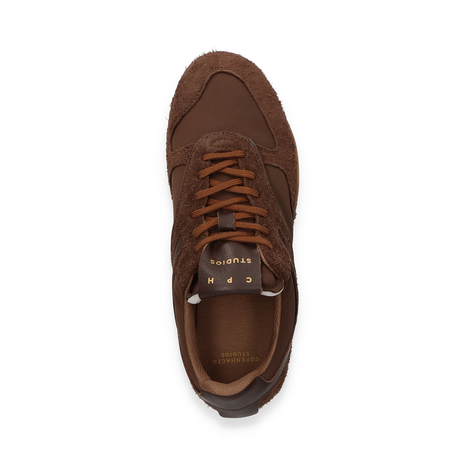 Der Sneaker CPH650 von Copenhagen präsentiert sich in einem eleganten Dunkelbraun, das durch die Kombination aus Leder und Textil eine raffinierte Optik erhält. Die sorgfältig gestalteten Details und die harmonische Farbgebung machen diesen Schuh zu einem stilvollen Begleiter für Damen. Die robuste Gummisohle sorgt für einen sicheren Auftritt, während die Textil-Innensohle und das Textilfutter für ein angenehmes Tragegefühl sorgen. Der dezente Absatz von 1,5 cm verleiht dem Sneaker eine subtile Erhöhung, die den Komfort nicht beeinträchtigt.
