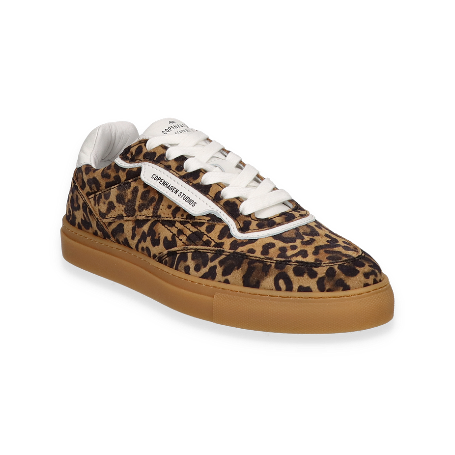 Entdecken Sie den eleganten Sneaker für Damen von Copenhagen Studios, der mit einem auffälligen Leopardenmuster und einer kontrastierenden weißen Sohle besticht. Das Design verbindet urbanen Stil mit einem Hauch von Wildheit, perfekt für modebewusste Frauen, die ein Statement setzen möchten. Die weiche Innenpolsterung und die hochwertige Verarbeitung sorgen für optimalen Tragekomfort und Langlebigkeit.