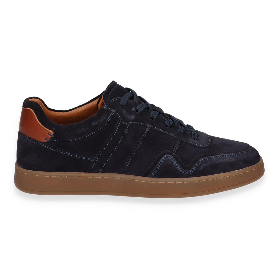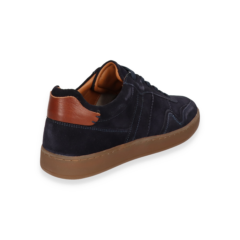Entdecken Sie den eleganten Sneaker von Daniel Kenneth für Herren, der in einem stilvollen Dunkelblau gehalten ist. Das Obermaterial aus hochwertigem Leder verleiht dem Schuh eine luxuriöse Optik, während die dezente Nahtführung und die kontrastierende Gummisohle in Braun einen modernen Akzent setzen. Die sorgfältig gestalteten Details und das zeitlose Design machen diesen Sneaker zu einem vielseitigen Begleiter für verschiedene Anlässe.