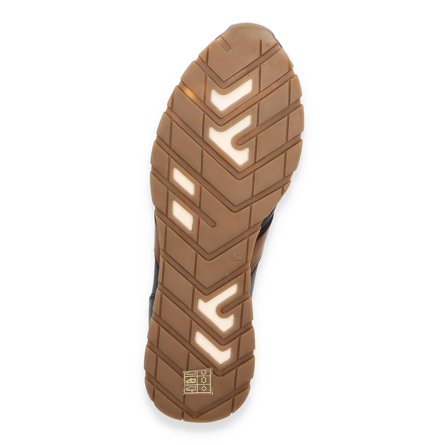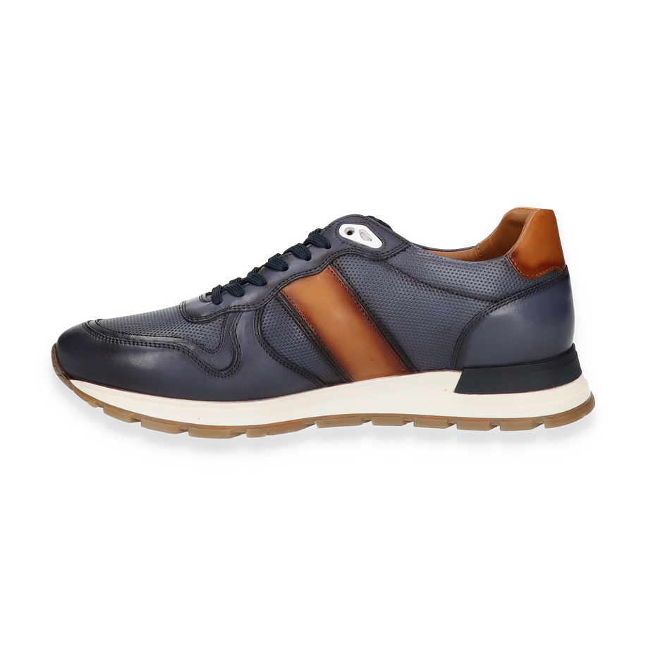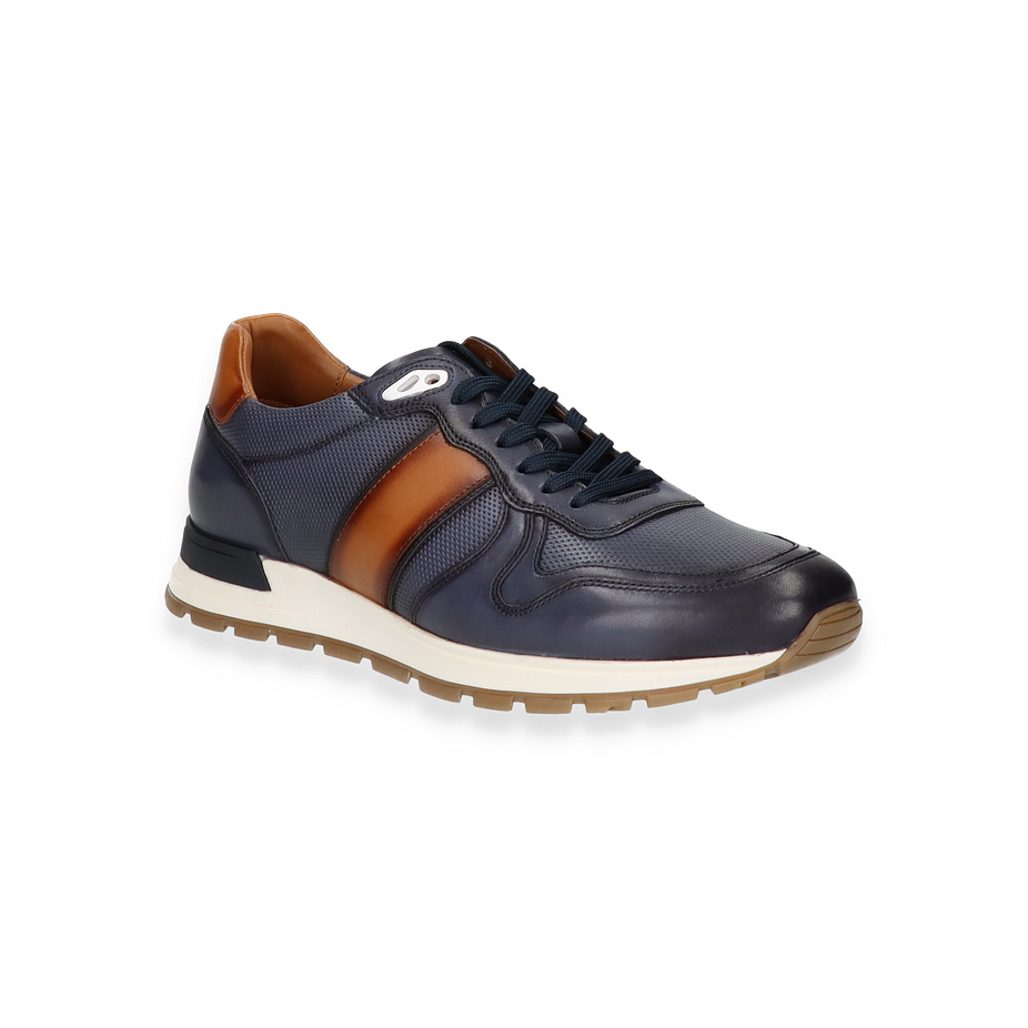 Preis inkl. MwSt.Der Daniel Kenneth Sneaker für Herren präsentiert sich in einem eleganten Design, das dunkelblaue und braune Lederakzente harmonisch kombiniert. Die sorgfältig gestalteten Details und die hochwertige Verarbeitung machen diesen Schuh zu einem stilvollen Begleiter für den modernen Mann. Die kontrastierenden Farben verleihen dem Sneaker einen zeitlosen Charme, während die sportliche Silhouette für einen modischen Auftritt sorgt. Perfekt für den Alltag oder besondere Anlässe, bietet dieser Sneaker sowohl Stil als auch Komfort.