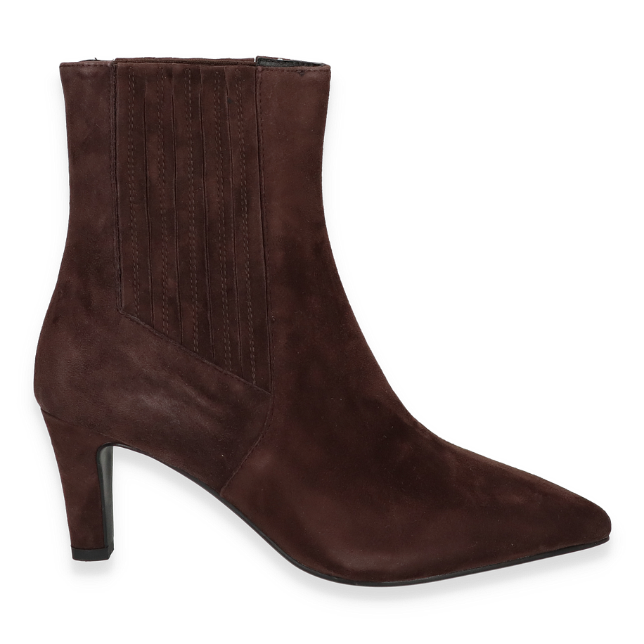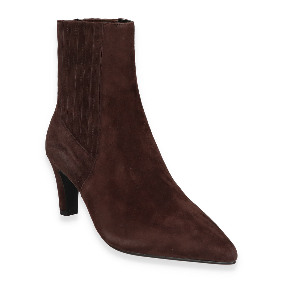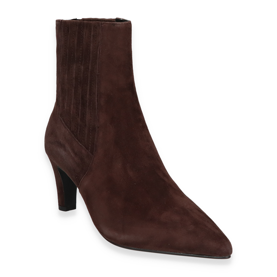 Preis inkl. MwSt.Die DI LAURO Klassische Stiefeletten für Damen präsentieren sich in einem eleganten Dunkelbraun, das jedem Outfit eine raffinierte Note verleiht. Der schlanke, spitz zulaufende Schnitt und der 7 cm hohe Absatz sorgen für eine ansprechende Silhouette, die sowohl zu formellen als auch zu lässigen Anlässen passt. Das hochwertige Leder als Obermaterial verleiht den Stiefeletten nicht nur eine edle Optik, sondern auch eine langlebige Qualität.