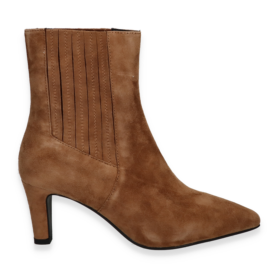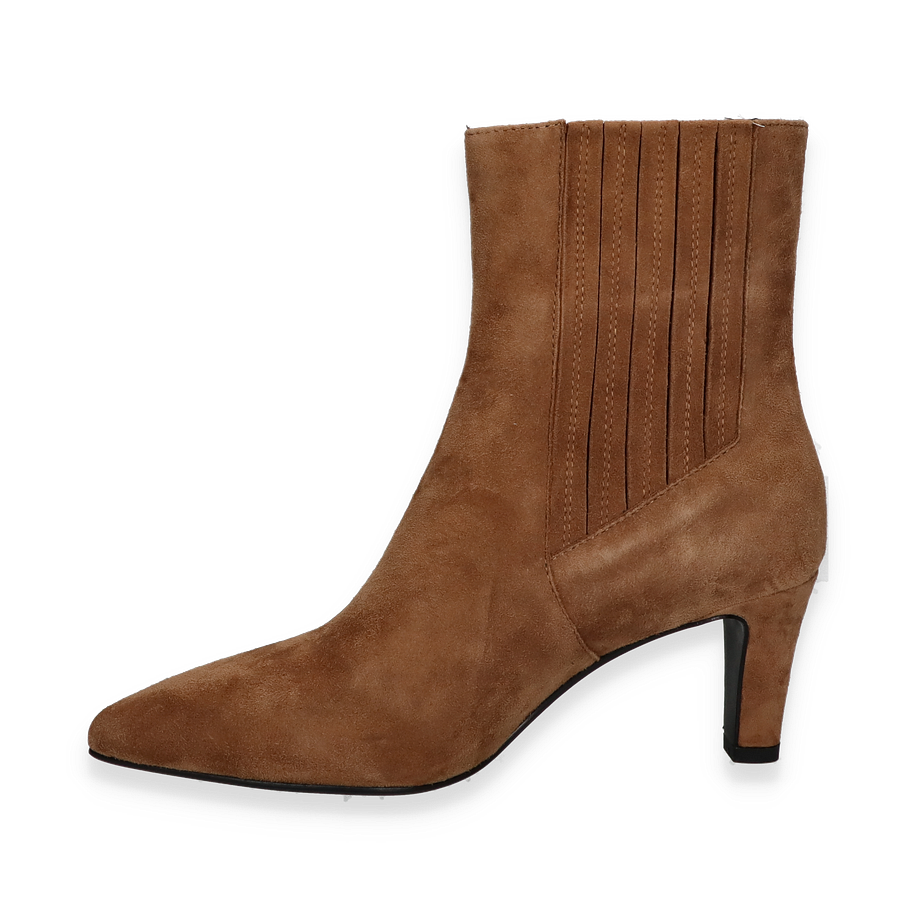Preis inkl. MwSt.Die DI LAURO Klassische Stiefeletten in Hellbraun sind ein elegantes Accessoire für Damen, das Stil und Komfort vereint. Diese Stiefeletten zeichnen sich durch ihr zeitloses Design aus, das durch die feine Lederoberfläche und die dezente Nahtführung unterstrichen wird. Der 7 cm hohe Absatz verleiht eine anmutige Silhouette, während die spitz zulaufende Form den modischen Look abrundet. Die warmen Brauntöne machen sie vielseitig kombinierbar und ideal für verschiedene Anlässe.