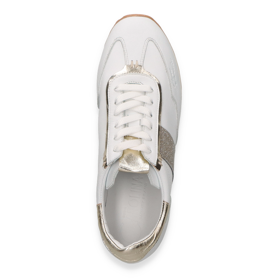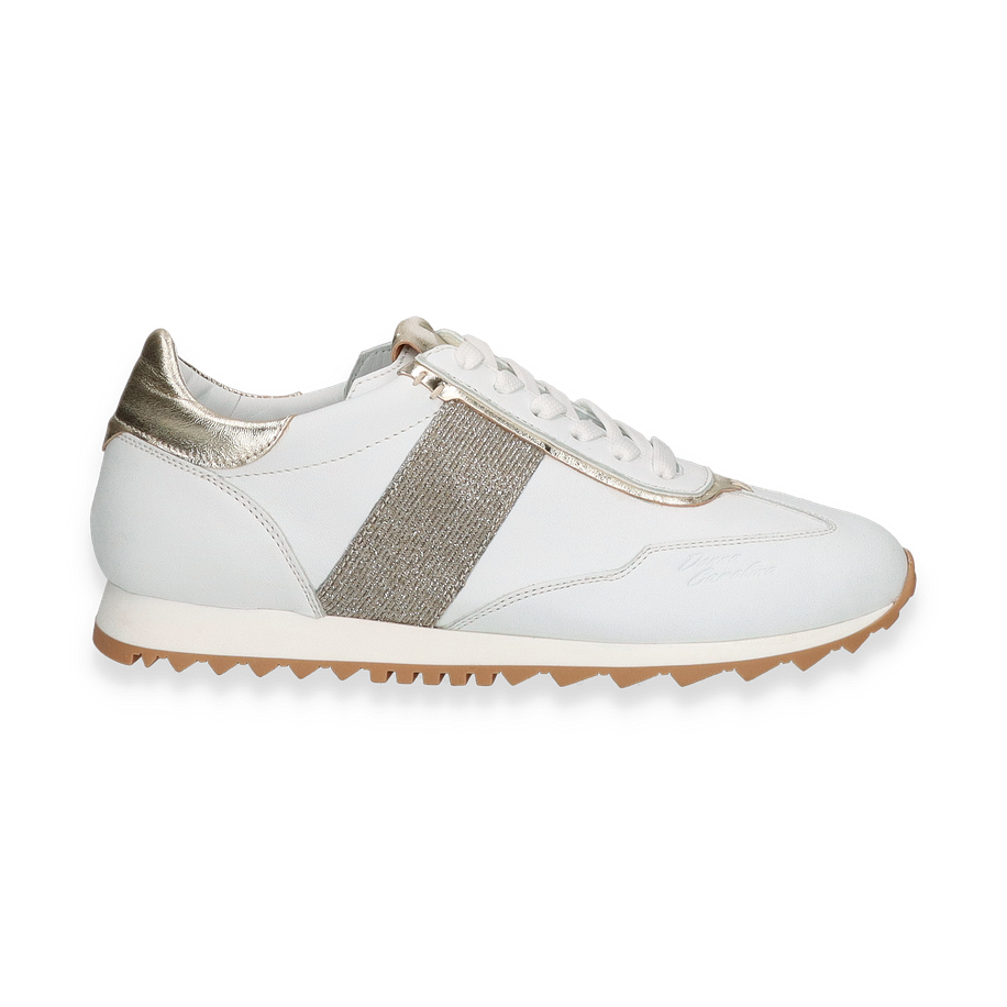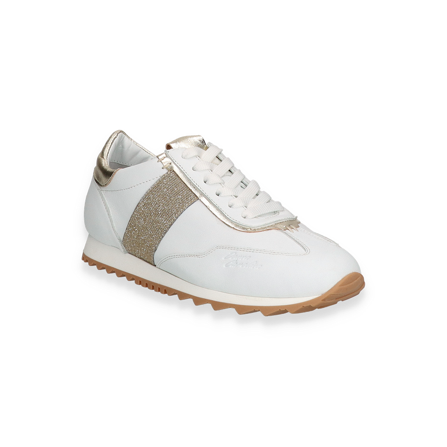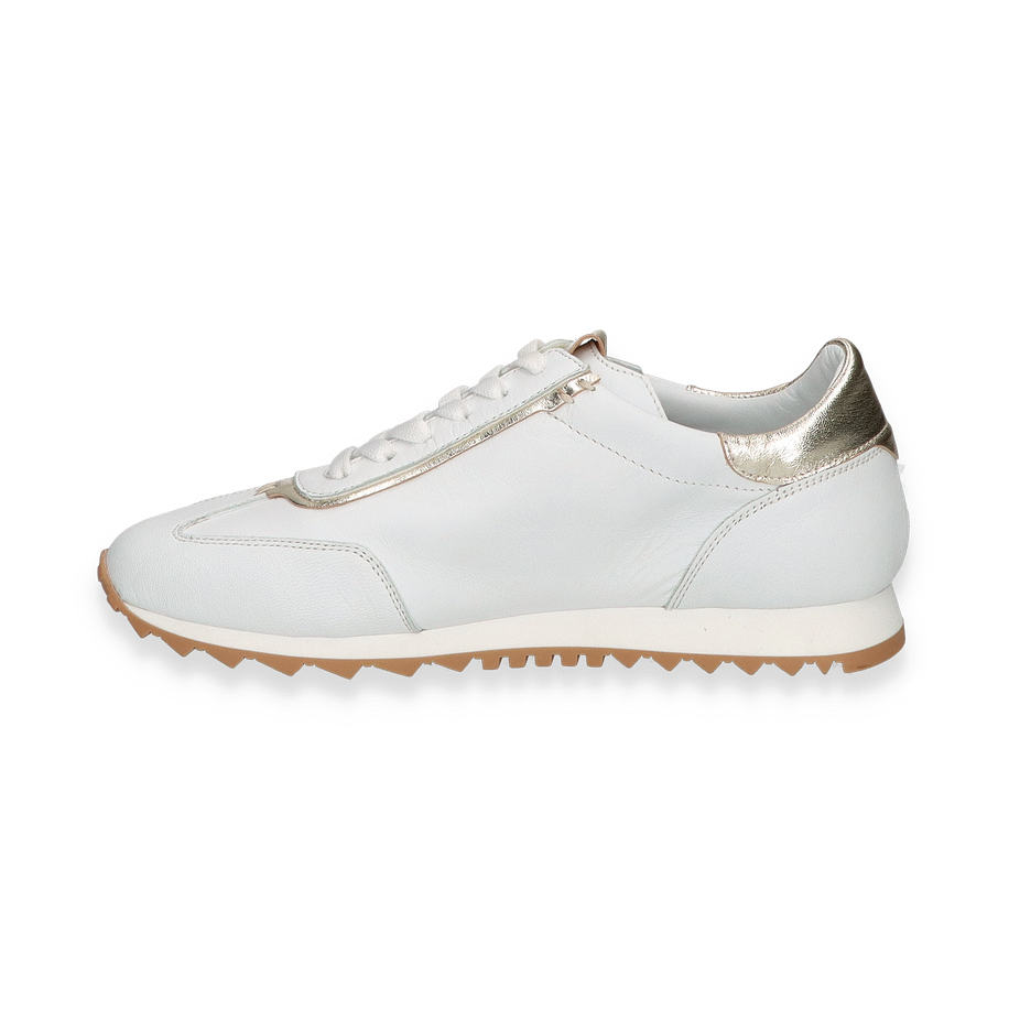 Preis inkl. MwSt.Der Donna Carolina Sneaker LIGHT NAOMI für Damen präsentiert sich in einem eleganten Weiß, das durch subtile goldene Akzente stilvoll ergänzt wird. Das Design besticht durch eine harmonische Kombination aus Leder und einem glänzenden Streifen, der dem Schuh einen Hauch von Glamour verleiht. Die sorgfältige Verarbeitung und die feinen Details machen diesen Sneaker zu einem perfekten Begleiter für modebewusste Frauen, die Wert auf Qualität und Stil legen.