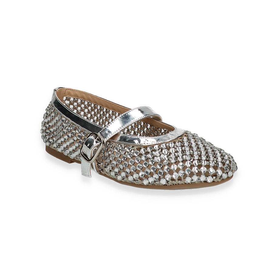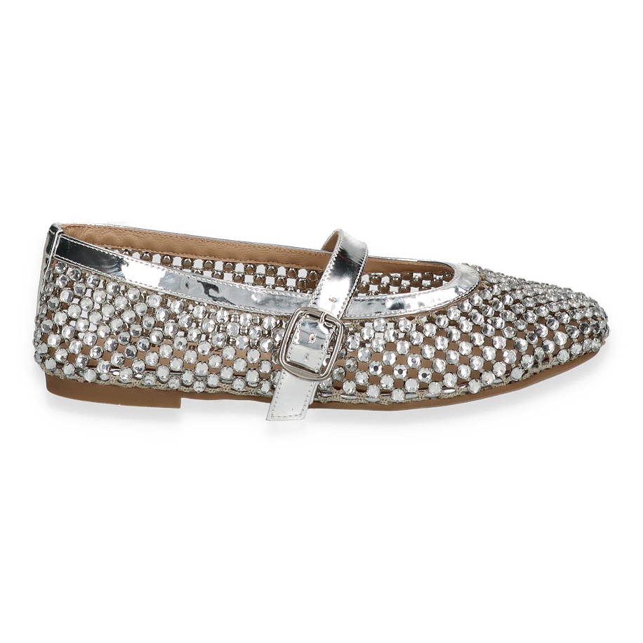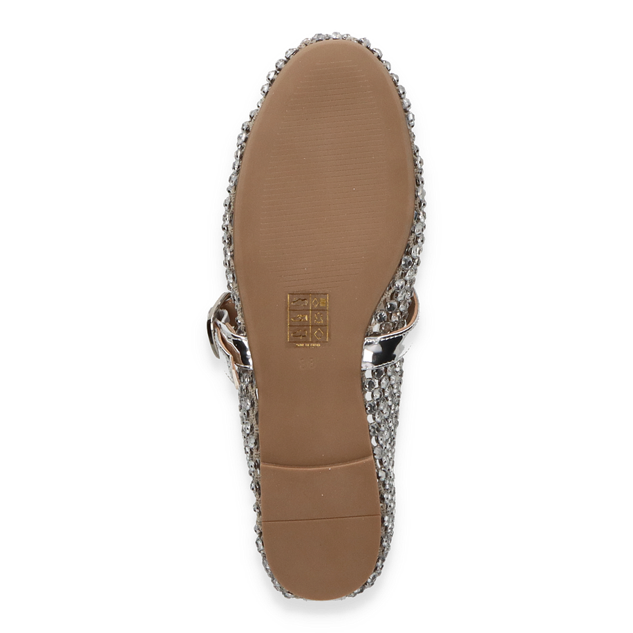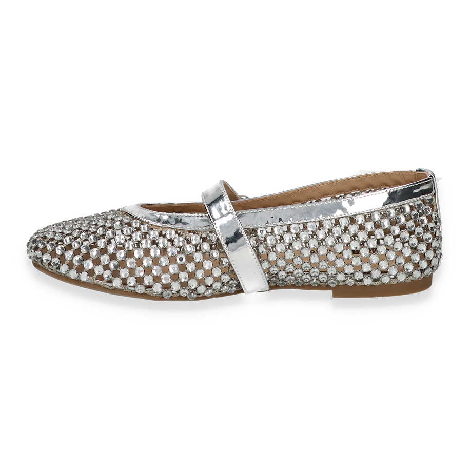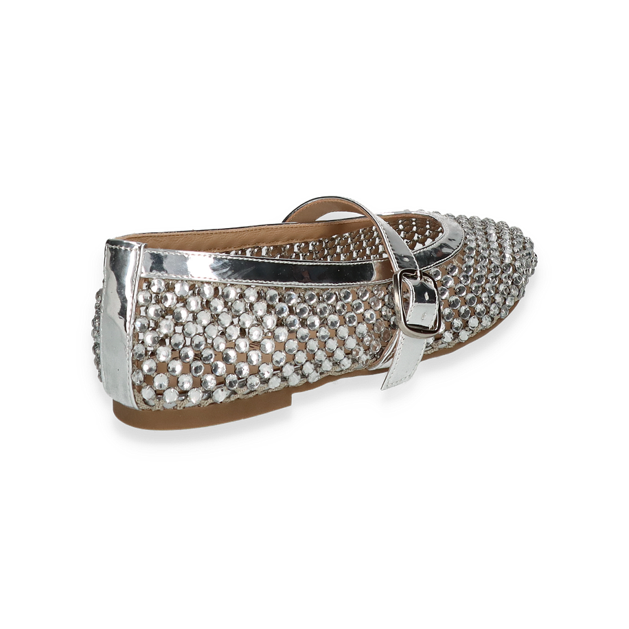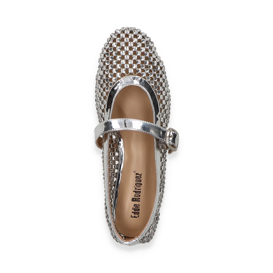Die eleganten Ballerinas von Eddie Rodriguez in strahlendem Silber sind ein echter Blickfang für Damen. Der glitzernde Textil-Oberstoff ist mit funkelnden Details verziert, die jedem Outfit einen Hauch von Glamour verleihen. Der schicke Riemen mit einer glänzenden Schnalle sorgt nicht nur für zusätzlichen Halt, sondern unterstreicht auch das stilvolle Design. Diese Ballerinas sind die perfekte Wahl für besondere Anlässe oder um einem alltäglichen Look das gewisse Etwas zu verleihen.