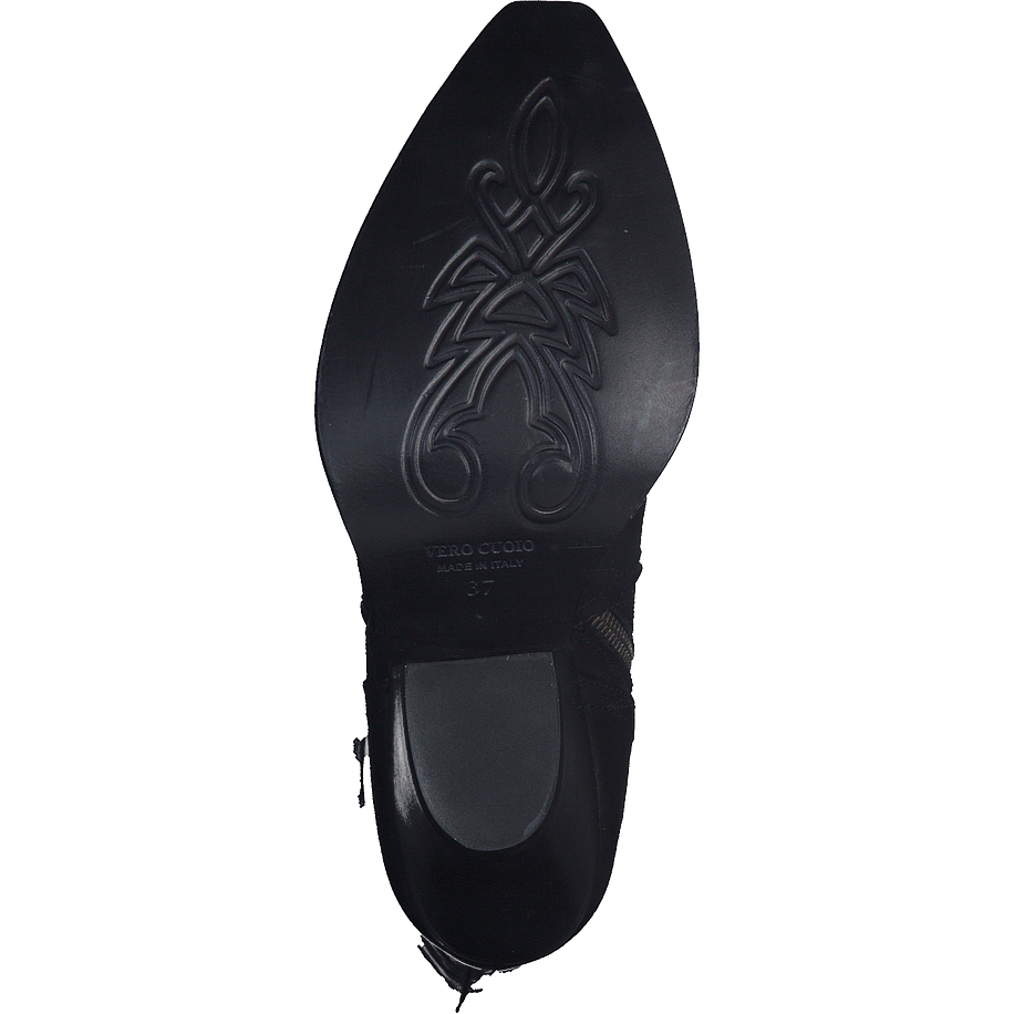 Freuen Sie sich auf ihren großen Auftritt mit diesen außergewöhnlichen Eddie Rodriguez Stiefeln für Damen! Die modischen Damenschuhe sind kniehoch und wurden aus feinstem Leder in klassischem Schwarz gefertigt. Der angesagte Western Stil unterstreicht Ihr besonderes Gespür für Mode und verleiht ihren Loks, egal ob im Alltag, in der Freizeit oder zum besonderen Anlass einen ganz besonderen Charme. Mittelhohe robuste Absätze, gepaart mit einer spitz zulaufenden Form schmeichelt der Figur und verlängert optisch das Bein. Auch der Tragekomfort der schwarzen Eddie Rodriguez Stiefel kann sich sehen lassen, so dass Sie sich rundum wohlfühlen werden.
