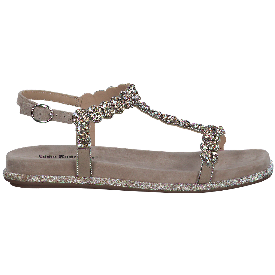 Preis inkl. MwSt.Entdecken Sie die eleganten Sandalen von Eddie Rodriguez für Damen. Diese beige Schuhe zeichnen sich durch ihre mit Schmucksteinen besetzten Riemchen aus, die einen Hauch von Glamour verleihen. Mit einer Absatzhöhe von 2 cm bieten sie einen komfortablen und dennoch stilvollen Auftritt. Das Obermaterial besteht aus sonstigem Material, während das Innenfutter eine Kombination aus Leder und sonstigem Material ist, was für hohen Tragekomfort sorgt. Die Innensohle aus Leder und die Sohle aus Gummi garantieren Langlebigkeit und Rutschfestigkeit. Ein perfekter Begleiter für jeden Anlass.