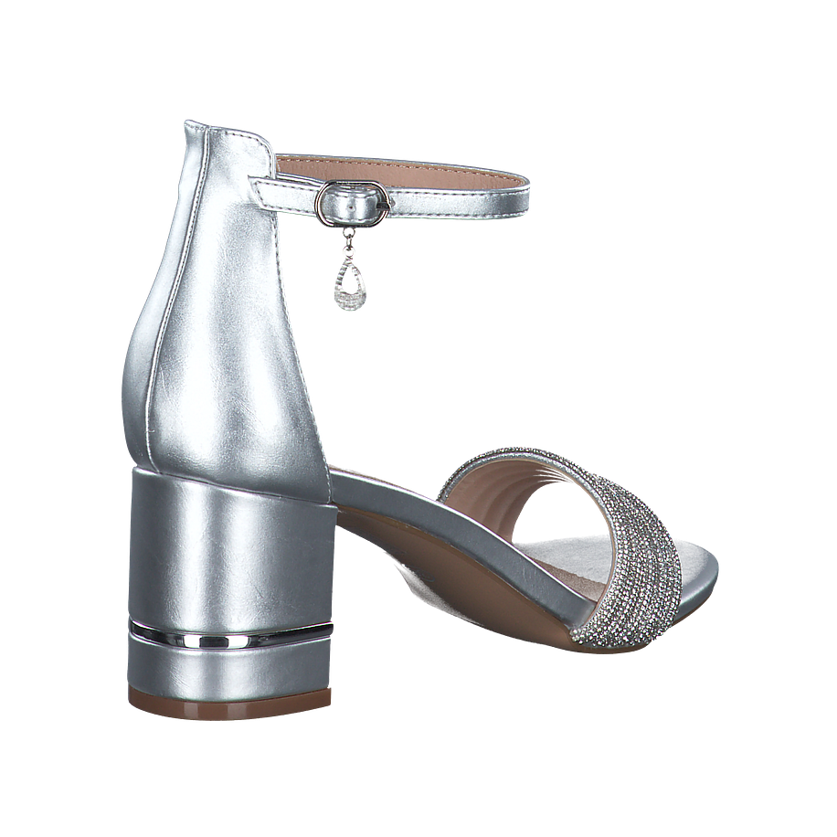 In einem strahlenden Silber kommen diese aufregenden Eddie Rodriguez Sandaletten für Damen daher und betonen damit Ihren eleganten und glamourösen Look perfekt. Der schlichte Schnitt kommt durch die schimmernde Farbe optimal zur Geltung, sodass die Schuhe im Nu zu atemberaubenden Hinguckern in jedem Outfit werden. Die Riemchen sind mit glitzernden Schmucksteinen besetzt, die im Sonnenschein besonders schön funkeln. Auf den robusten Blockabsätzen sind Sie stets bequem unterwegs und können dabei das außergewöhnliche Design der silberfarbenen Eddie Rodriguez Sandaletten genießen.