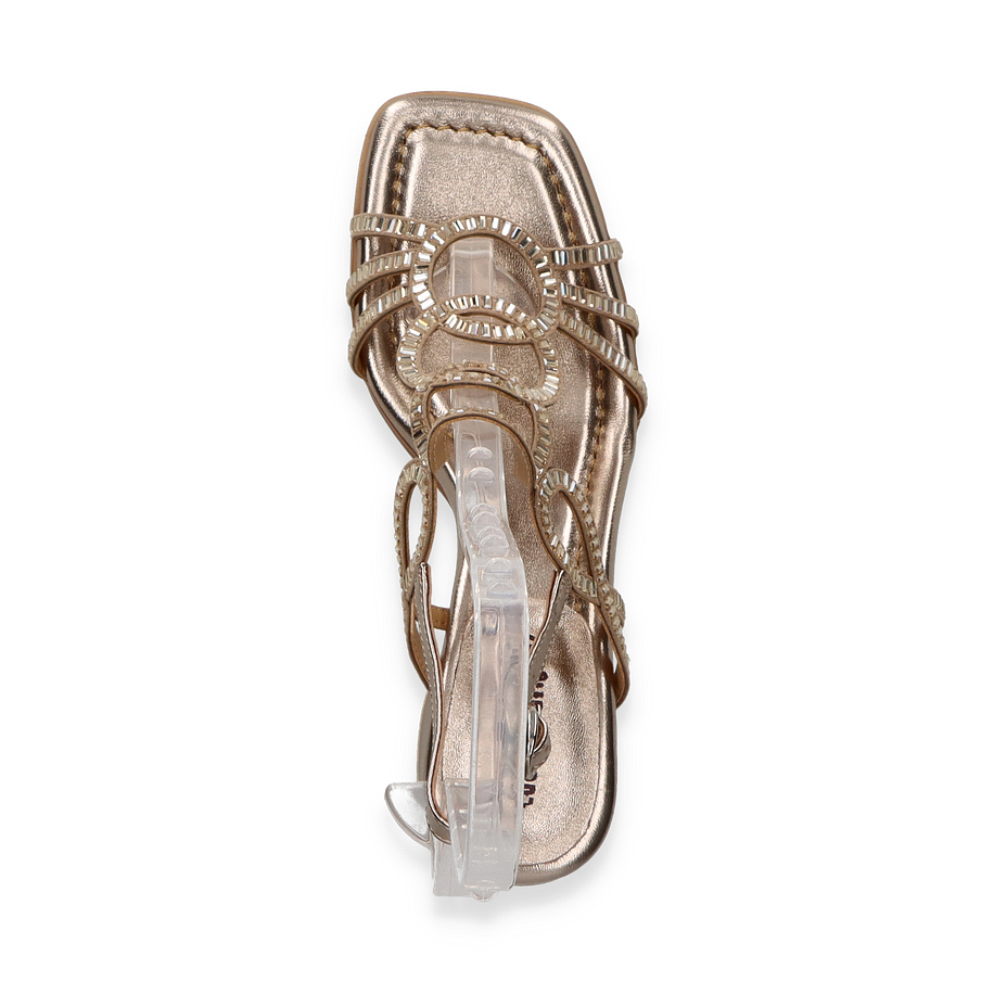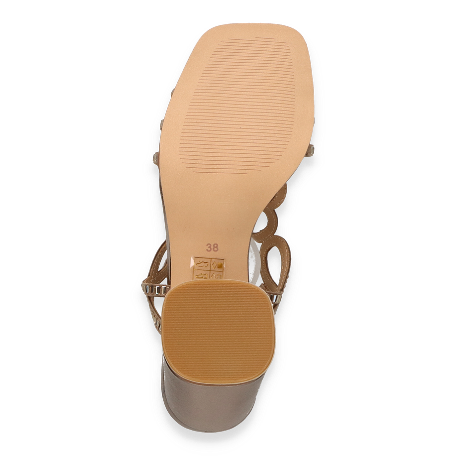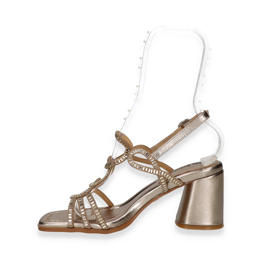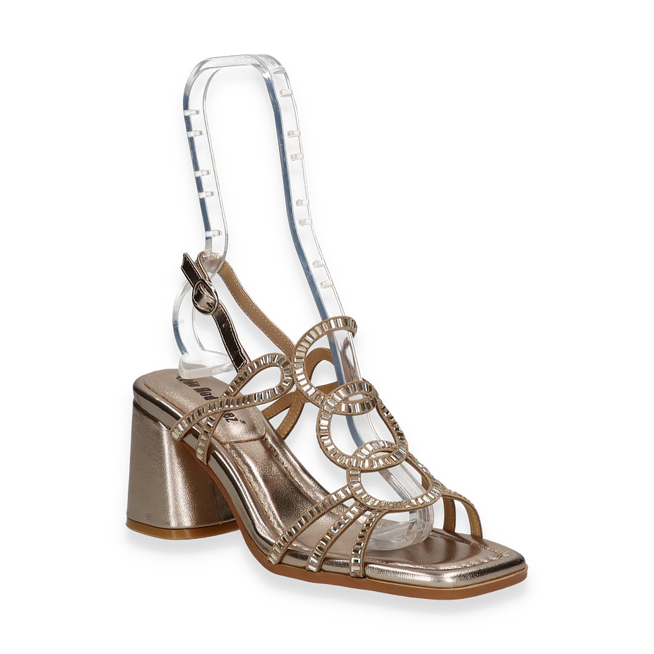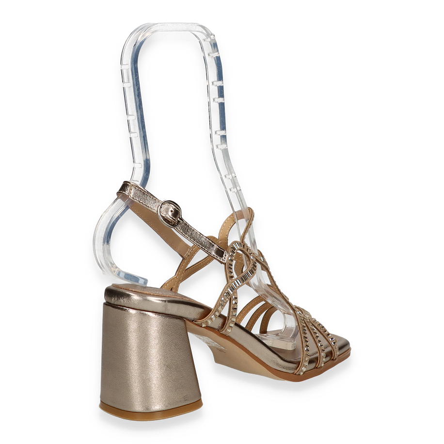 Diese eleganten Sandaletten von Eddie Rodriguez in glänzendem Gold sind ein echter Hingucker für Damen. Der raffinierte Riemchenstil mit kunstvollen Details verleiht jedem Outfit einen Hauch von Glamour. Der 8 cm hohe Blockabsatz sorgt für eine ansprechende Silhouette und bietet gleichzeitig Stabilität und Komfort. Die Sandaletten sind ideal für besondere Anlässe oder um einem Alltagslook das gewisse Etwas zu verleihen.