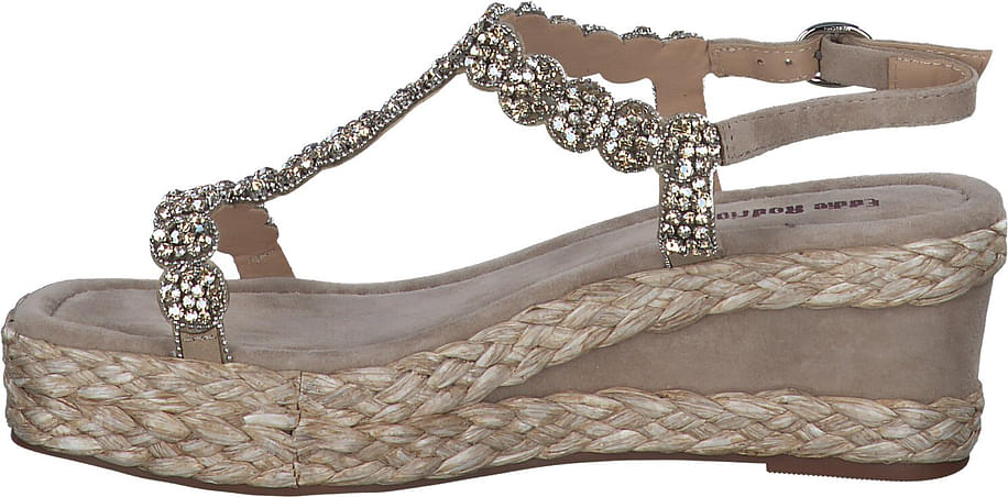 Preis inkl. MwSt.Entdecken Sie die eleganten Wedges von Eddie Rodriguez für Damen. Diese Schuhe in Beige sind mit Schmucksteinen besetzten Riemchen verziert, die einen Hauch von Glamour verleihen. Sie verfügen über eine Absatzhöhe von 6 cm, die Ihnen einen stilvollen Auftritt garantiert. Das Obermaterial besteht aus sonstigem Material, während das Innenfutter aus einer Kombination von Leder und sonstigem Material besteht, was für zusätzlichen Komfort sorgt. Die Innensohle aus Leder und die Sohle aus Gummi gewährleisten eine lange Haltbarkeit. Mit diesen Schuhen von Eddie Rodriguez treten Sie stilvoll in Erscheinung.