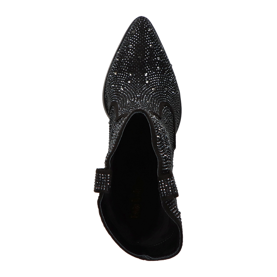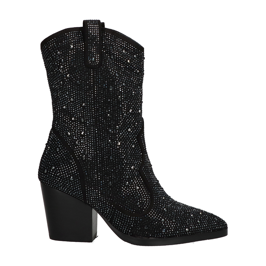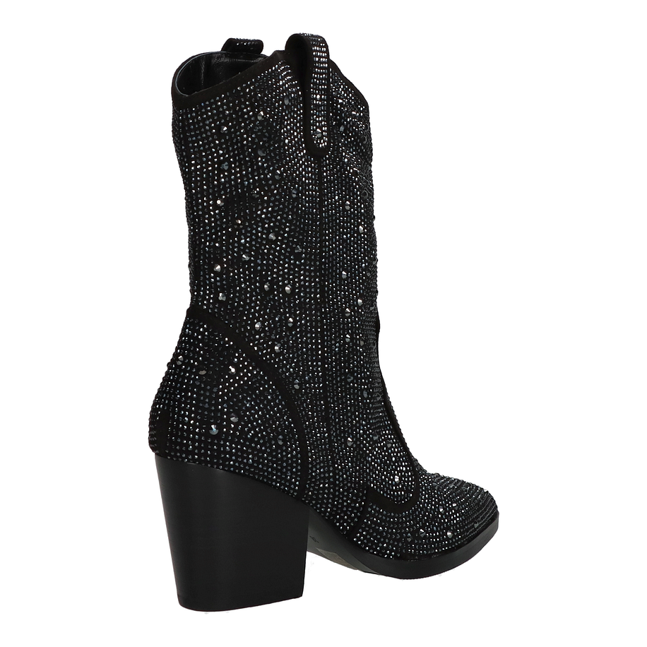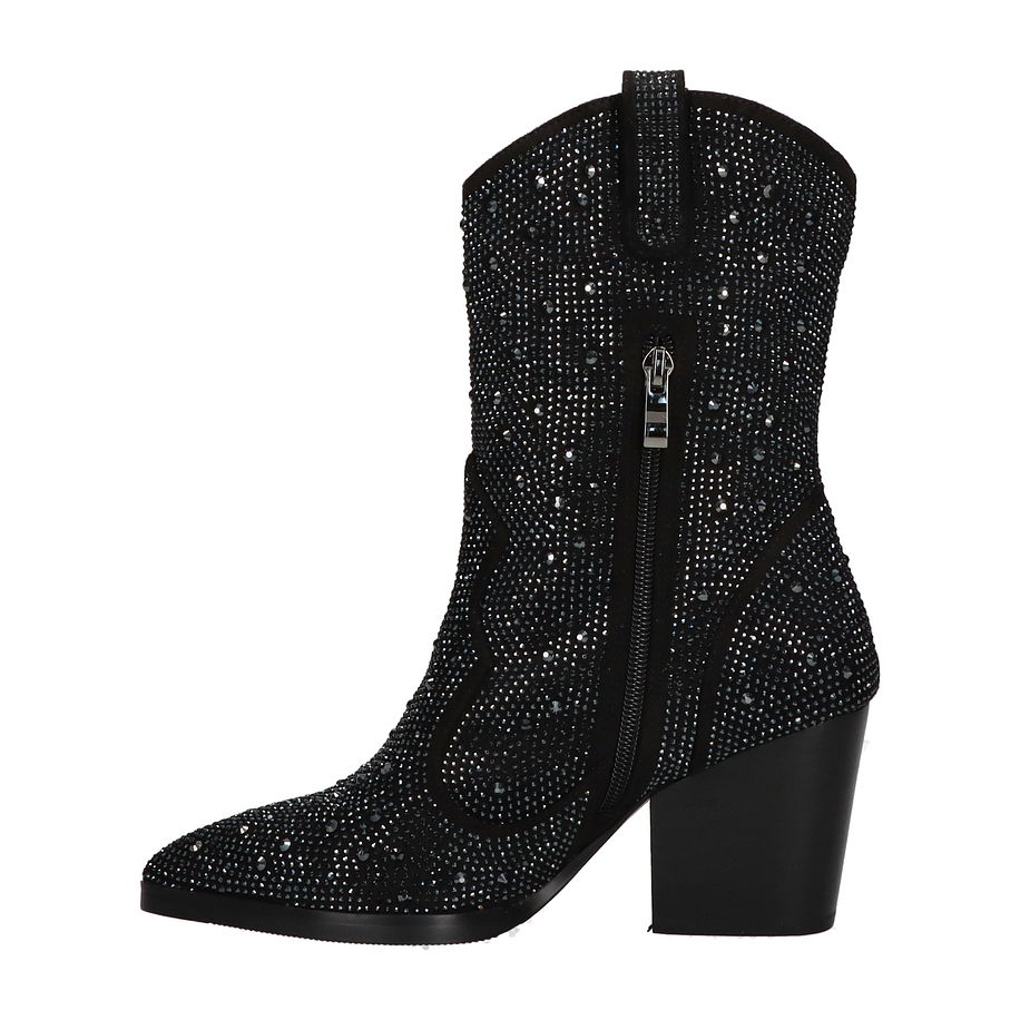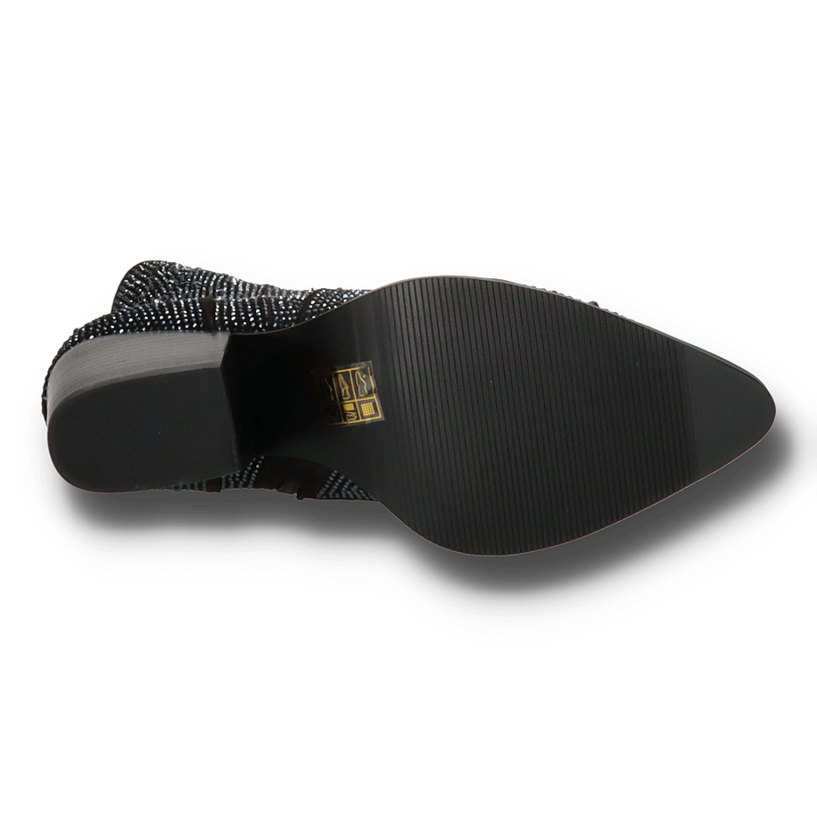 Preis inkl. MwSt.Entdecken Sie den eleganten Charme der Eddie Rodriguez Western Boots für Damen in klassischem Schwarz. Diese stilvollen Stiefel zeichnen sich durch eine aufwendige Verzierung mit Glitzersteinen aus, die jedem Outfit einen Hauch von Glamour verleihen. Der 8 cm hohe Absatz sorgt für eine feminine Silhouette und bietet gleichzeitig einen bequemen Stand. Die hochwertige Verarbeitung und das ansprechende Design machen diese Stiefel zu einem unverzichtbaren Begleiter für modebewusste Frauen. Die Eddie Rodriguez Western Boots überzeugen nicht nur durch ihre Optik, sondern auch durch ihre hochwertigen Materialien. Das Obermaterial besteht aus strapazierfähigem Textil, während das Innenmaterial aus weichem Textil für optimalen Tragekomfort sorgt. Die Lederinnensohle bietet zusätzlichen Komfort und Atmungsaktivität. Die robuste Gummisohle garantiert sicheren Halt auf verschiedenen Untergründen. Diese Stiefel sind die perfekte Wahl für stilbewusste Damen, die Wert auf Qualität und Design legen.