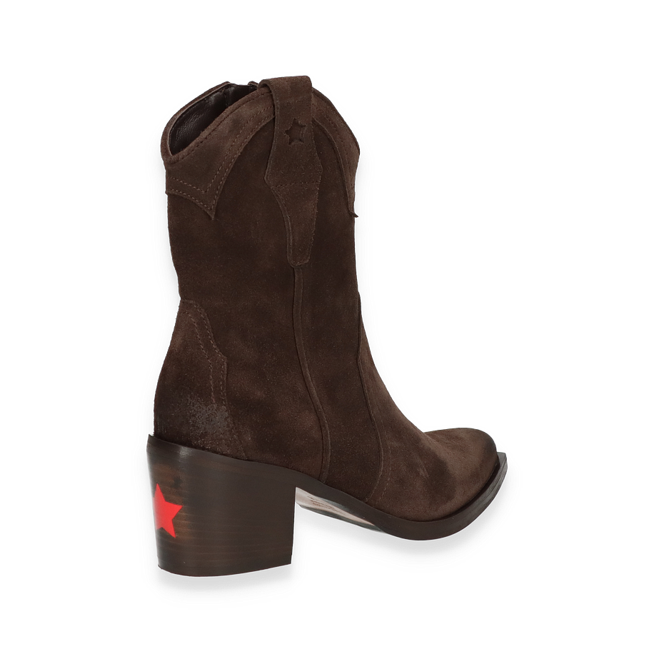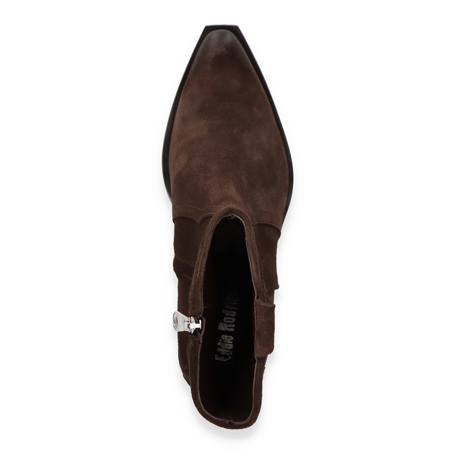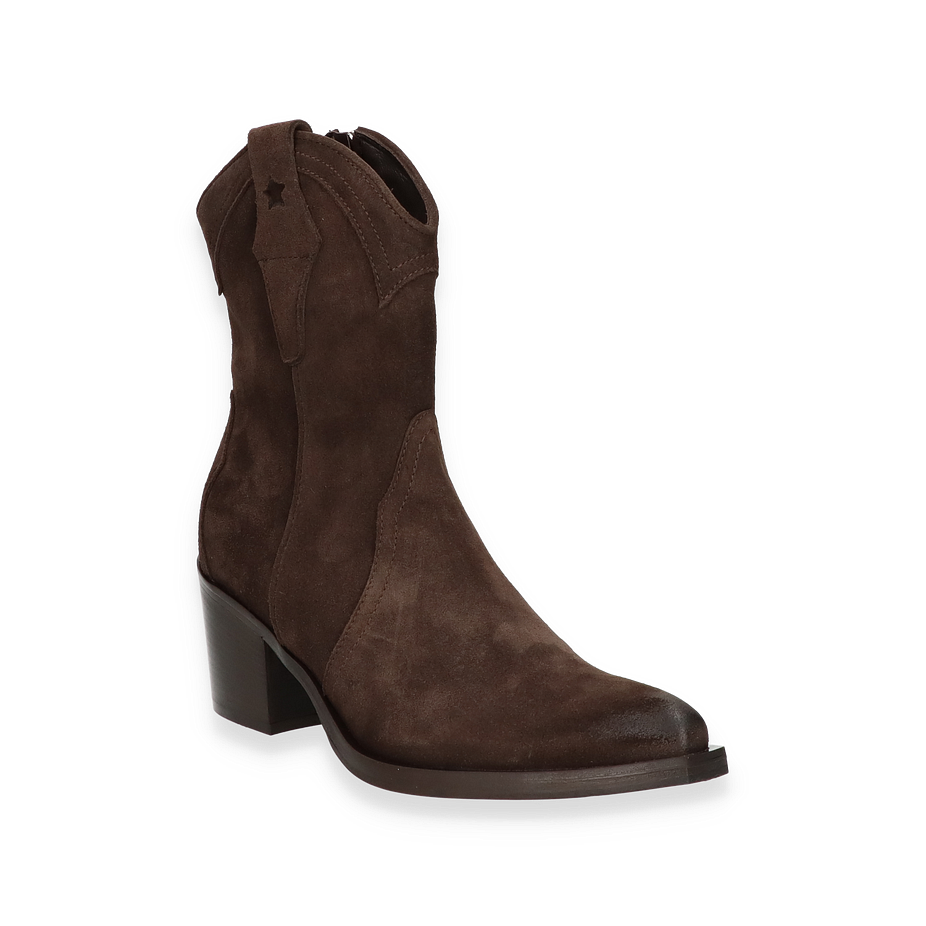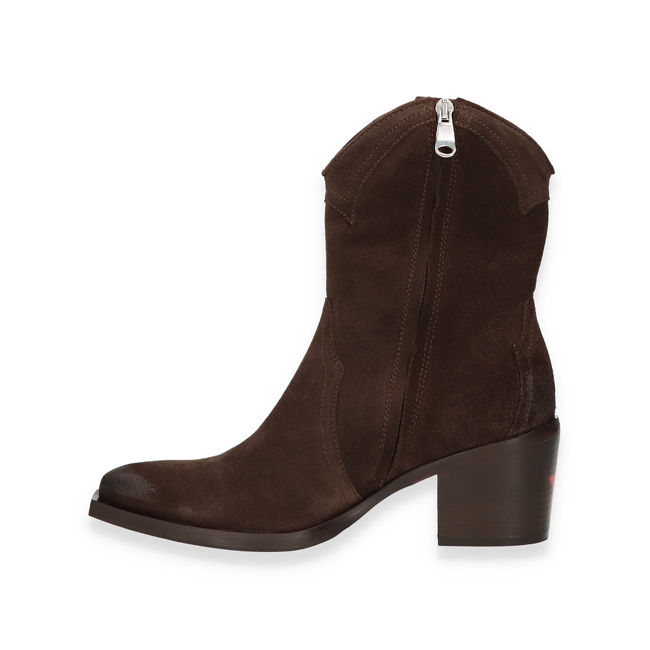 Preis inkl. MwSt.Entdecken Sie die eleganten Western Boots von Eddie Rodriguez, die für Damen entworfen wurden. Diese stilvollen Stiefel in dunkelbraunem Leder vereinen klassischen Western-Charme mit modernem Design. Der 6 cm hohe Absatz verleiht Ihnen eine ansprechende Silhouette, während die sorgfältig gearbeiteten Details und die seitlichen Ziernähte den authentischen Look unterstreichen. Die robuste Sohle sorgt für Stabilität und Komfort bei jedem Schritt.
