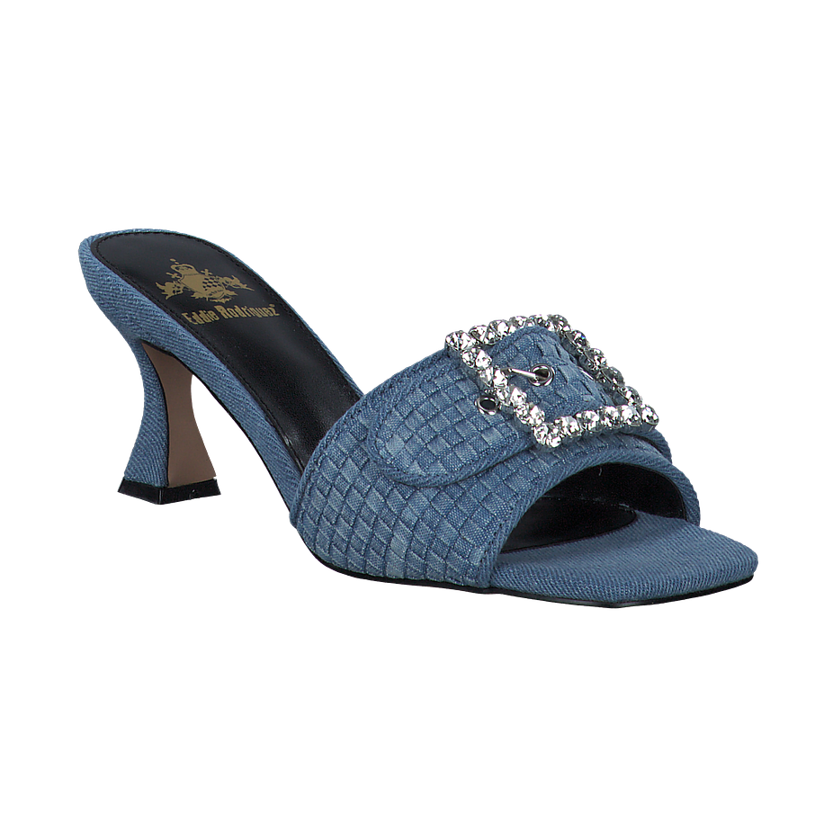 Entdecken Sie die stilvollen und komfortablen Pantoletten LUCIA von Eddie Rodriguez für Damen. Diese blauen Schuhe bestechen durch ihr einzigartiges Design in Jeans-Optik und einer auffälligen Strassschnalle, die jedem Outfit das gewisse Etwas verleiht. Mit einer Absatzhöhe von 6,5 cm bieten sie einen eleganten Auftritt, ohne dabei den Komfort zu vernachlässigen. Das Obermaterial besteht aus hochwertigem Textil, während das Innenfutter und die Innensohle aus sonstigem Material gefertigt sind. Die robuste Gummisohle sorgt für einen sicheren und rutschfesten Auftritt. Genießen Sie den Komfort und Stil der Eddie Rodriguez Pantoletten LUCIA.