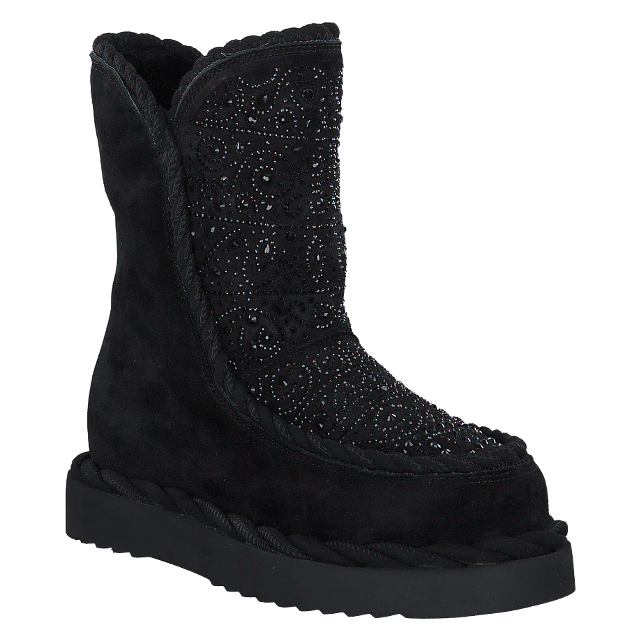 Mit den Eddie Rodriguez Moon Boots für Damen können Sie den Winter in vollen Zügen genießen. Diese warmen und bequemen Stiefel sind in klassischem Schwarz gehalten und mit glitzernden Mustern verziert, die ihnen eine verspielte Note verleihen. Die Gummisohlen sorgen für Stabilität, selbst auf schneebedeckten Straßen. Hergestellt aus hochwertigem Leder, sind diese Moon Boots die ideale Wahl, um in der kalten Jahreszeit stilvoll und gemütlich zu bleiben. Gehen Sie warm und feminin durch den Winter!