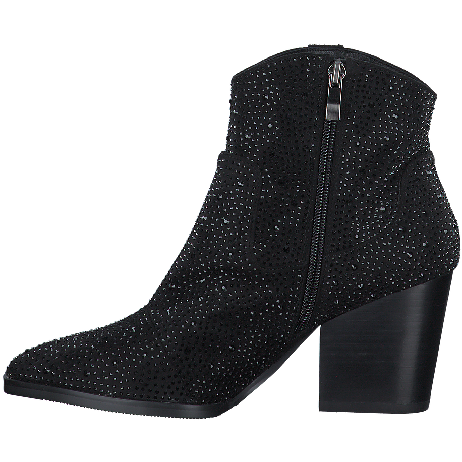 Mit den Eddie Rodriguez Western Boots für Damen in klassischem Schwarz betreten Sie die Welt des Wilden Westens mit Stil. Ihre knöchelhohe Form und die spitze Zehenpartie verleihen diesen Stiefeln eine authentische Western-Ästhetik. Die robusten Blockabsätze sorgen für Stabilität und Tragekomfort, während die edlen Musterungen aus glitzernden Steinchen einen Hauch von Glamour hinzufügen. Diese Stiefel sind perfekt für Frauen, die einen eleganten und dennoch rustikalen Look schätzen.