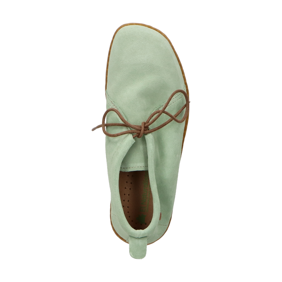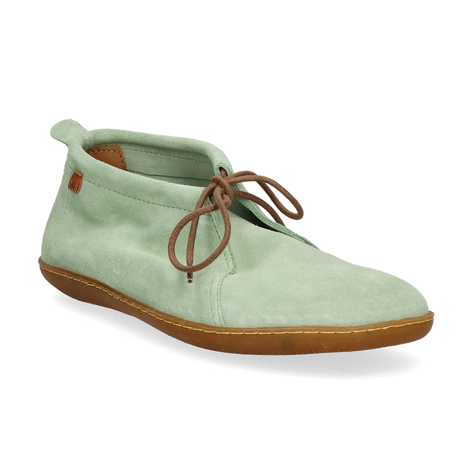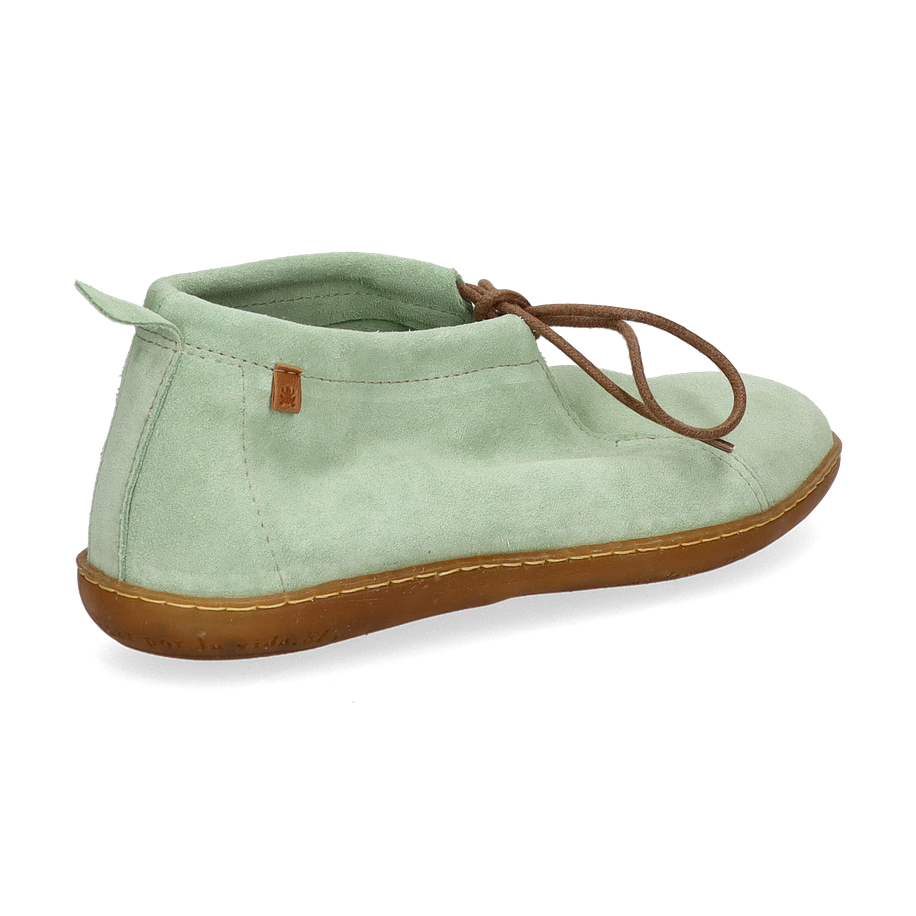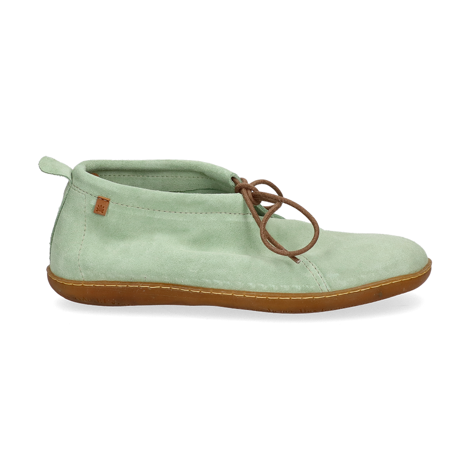 Preis inkl. MwSt.Der EL VIAJERO Schnürboot von El Naturalista präsentiert sich in einem erfrischenden Mint-Ton, der jedem Outfit eine stilvolle Note verleiht. Das Design besticht durch seine schlichte Eleganz und die sorgfältige Verarbeitung. Die braunen Schnürsenkel setzen einen dezenten Kontrast und verleihen dem Schuh eine zeitlose Ästhetik. Die flache Sohle sorgt für einen lässigen Look, der sowohl für den Alltag als auch für besondere Anlässe geeignet ist.