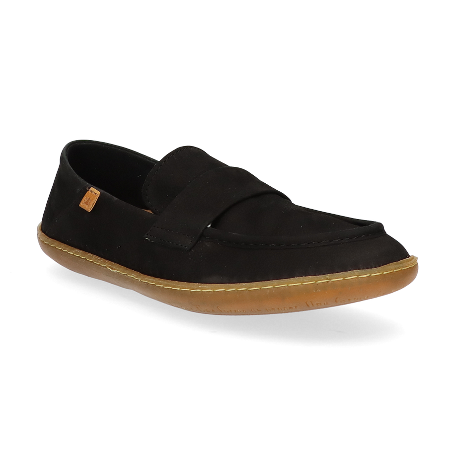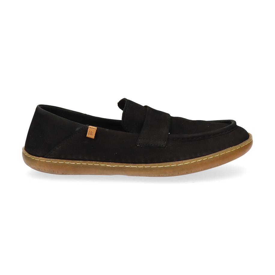 Preis inkl. MwSt.Der EL VIAJERO Slipper von El Naturalista in elegantem Schwarz vereint zeitlose Ästhetik mit modernem Komfort. Das Obermaterial aus hochwertigem Leder verleiht dem Schuh eine edle Optik, während die dezente Nahtführung und das schlichte Design für eine vielseitige Kombinierbarkeit sorgen. Die flache Sohle und die subtile Absatzhöhe von 2 cm bieten optimalen Tragekomfort für Damen, die Wert auf stilvolle Bequemlichkeit legen.