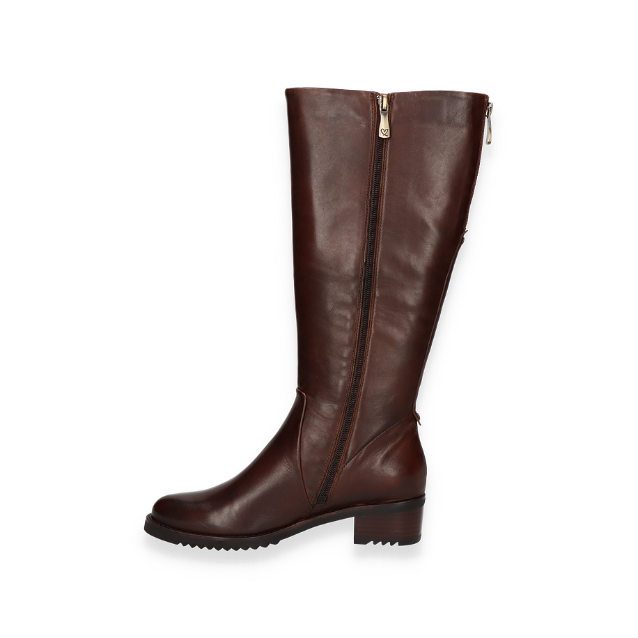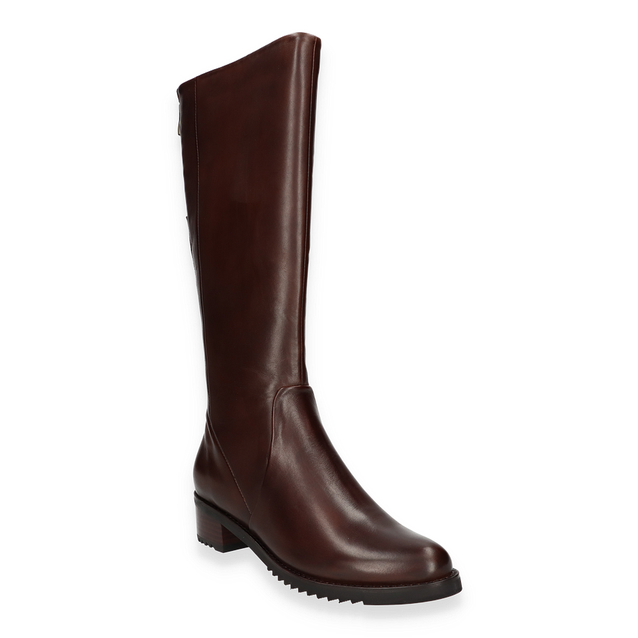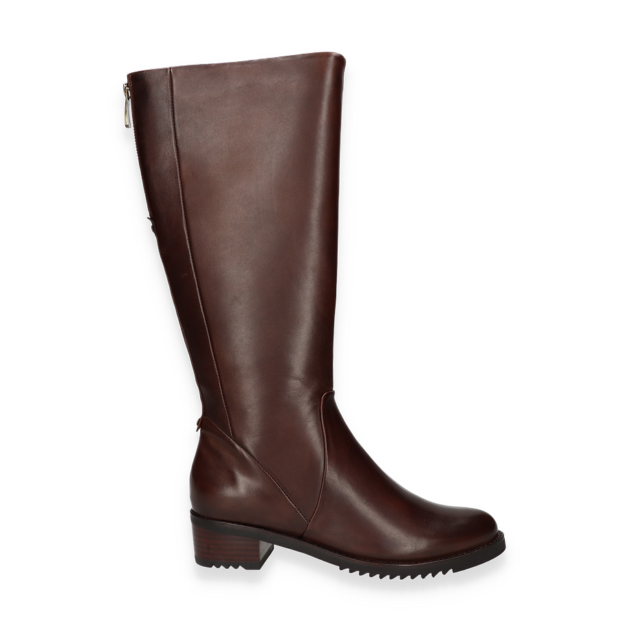 Preis inkl. MwSt.Der Everybody Stiefel "BRISA" für Damen präsentiert sich in einem eleganten Dunkelbraun, das zeitlose Klasse und Vielseitigkeit ausstrahlt. Der hohe Schaft mit einer Höhe von 37 cm und einer Breite von 36 cm verleiht dem Stiefel eine schlanke Silhouette, die sowohl zu formellen als auch zu lässigen Outfits passt. Der 4 cm hohe Absatz sorgt für einen dezenten, aber wirkungsvollen Lift, während das glatte Lederoberteil einen Hauch von Raffinesse hinzufügt.