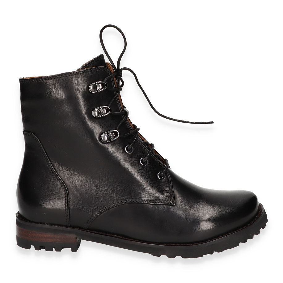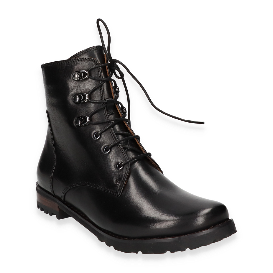 Preis inkl. MwSt.Die klassischen Stiefeletten von Everybody in elegantem Schwarz vereinen zeitlose Eleganz mit modernem Design. Gefertigt aus hochwertigem Leder, bieten sie eine glatte, glänzende Oberfläche, die jedem Outfit einen Hauch von Raffinesse verleiht. Die Schnürung und der seitliche Reißverschluss sorgen für eine perfekte Passform und erleichtern das An- und Ausziehen. Mit einer Schafthöhe von 14 cm und einer Schaftweite von 24 cm bieten sie optimalen Halt und Komfort für Damen.