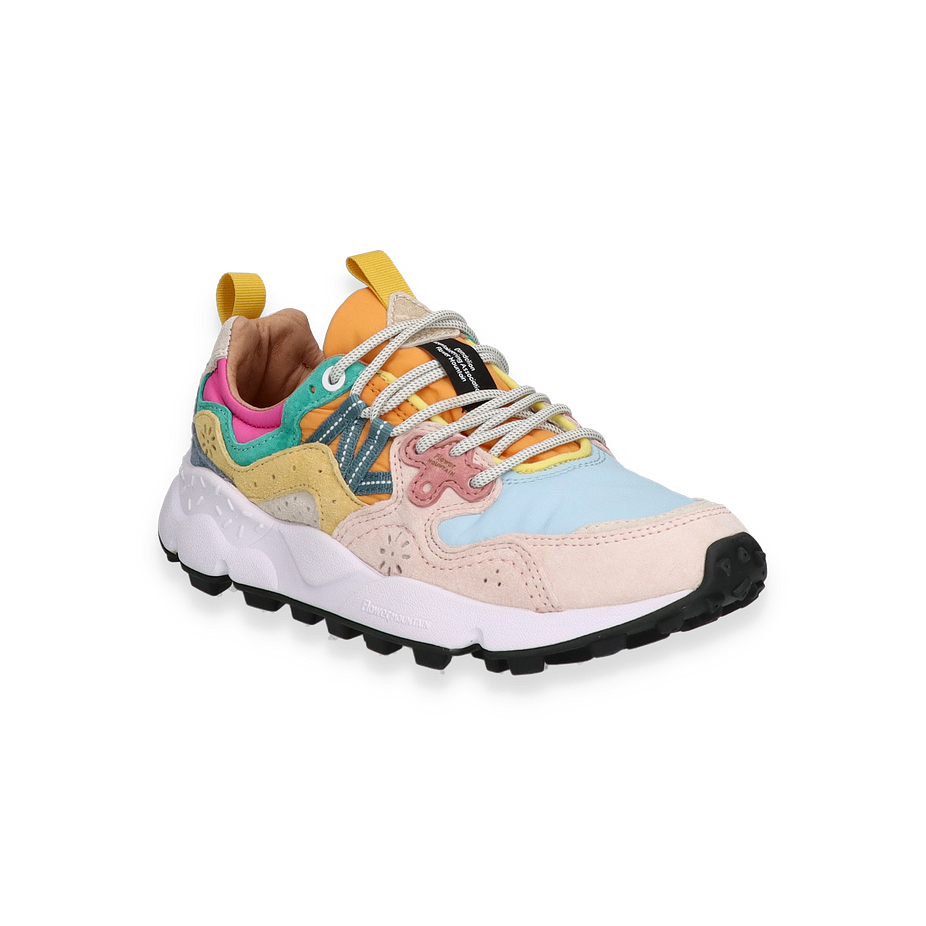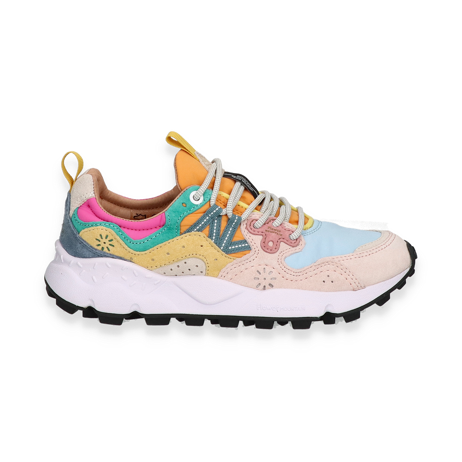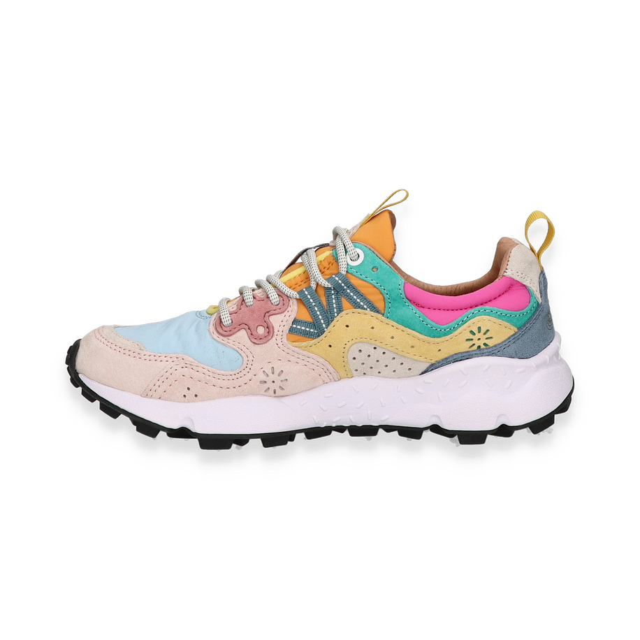 Der Flower Mountain Sneaker YAMANO für Damen präsentiert sich in einem lebendigen Design mit einer harmonischen Kombination aus Blau und bunten Farbakzenten. Die kreative Farbgestaltung verleiht diesem Schuh einen einzigartigen Charakter, der sowohl stilvoll als auch modern wirkt. Die hochwertige Verarbeitung aus Leder und Textil sorgt für eine ansprechende Optik und Langlebigkeit. Die auffällige Sohle mit ihrem markanten Profil bietet nicht nur einen modischen Look, sondern auch optimalen Halt auf verschiedenen Untergründen.