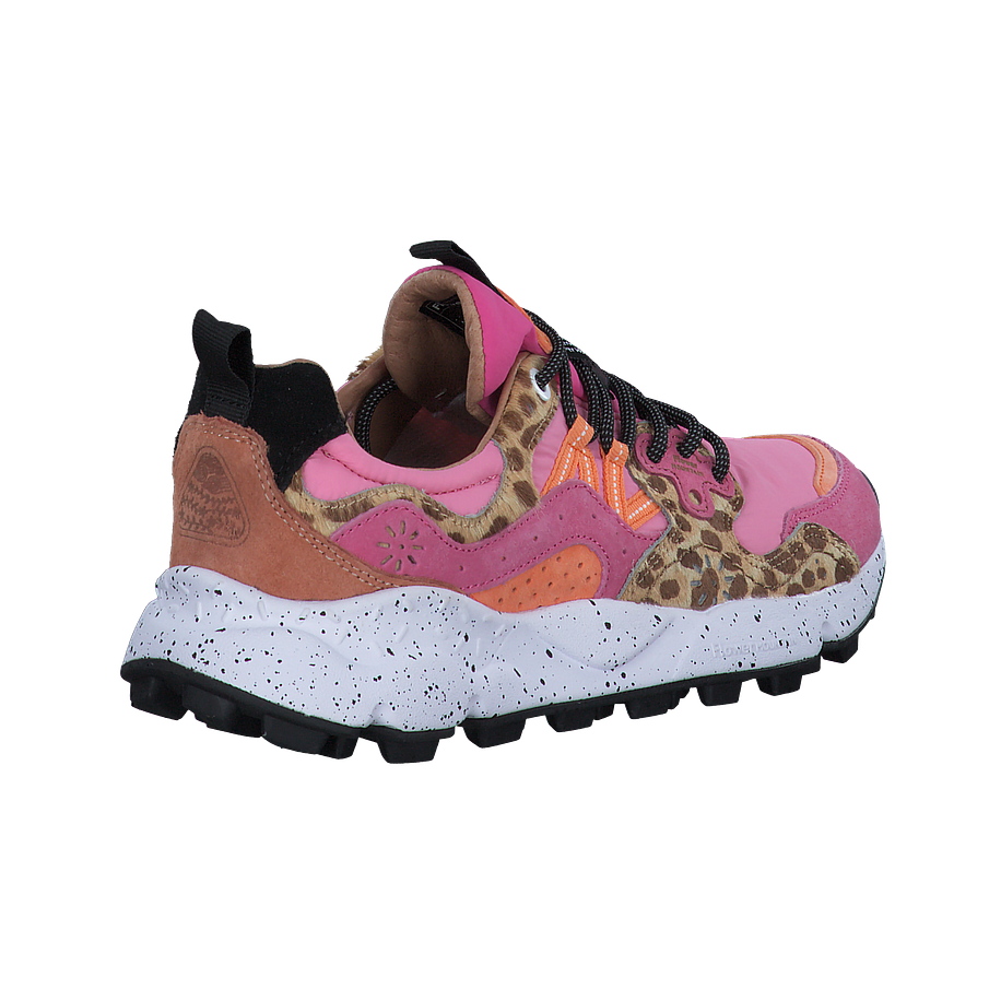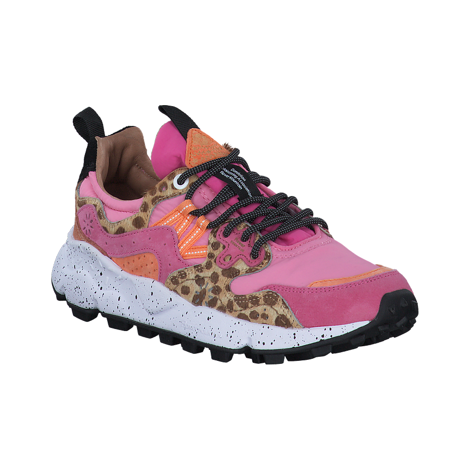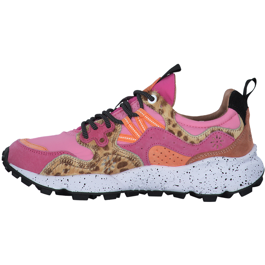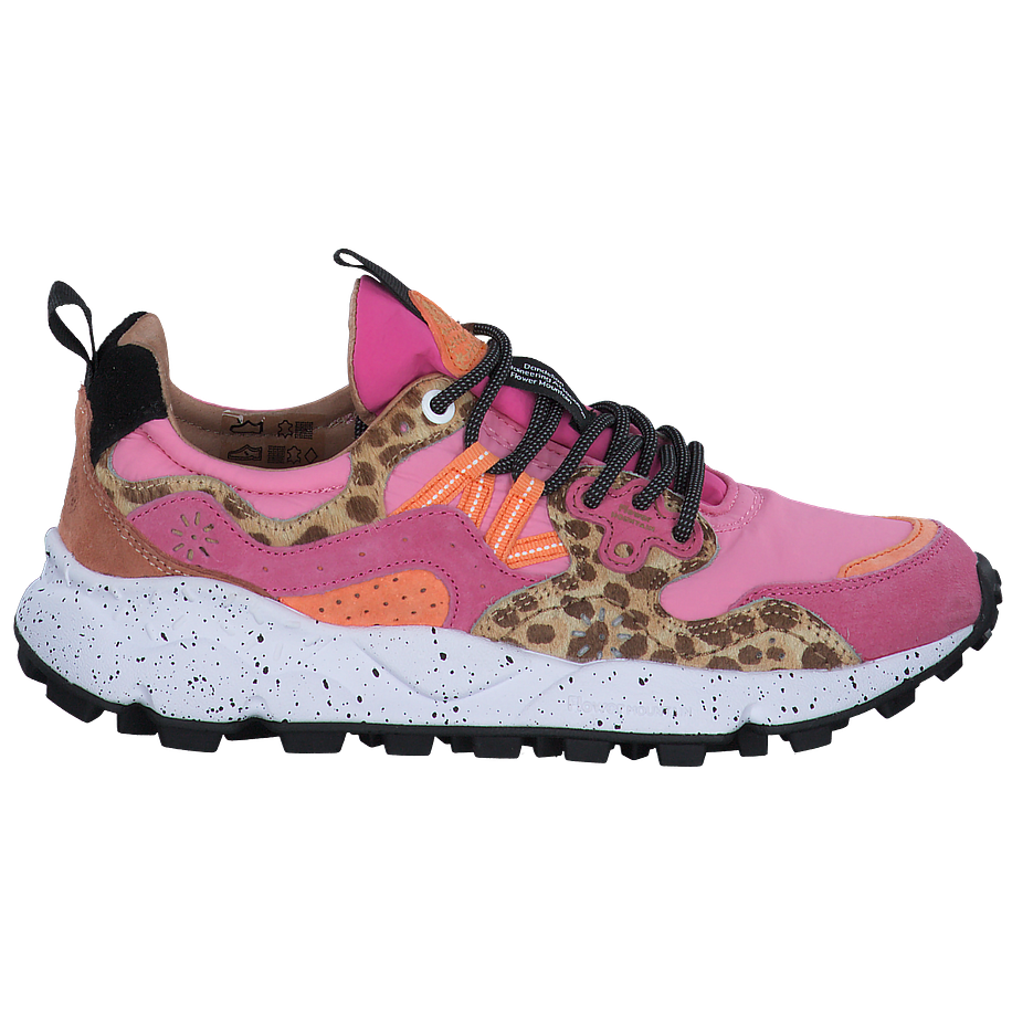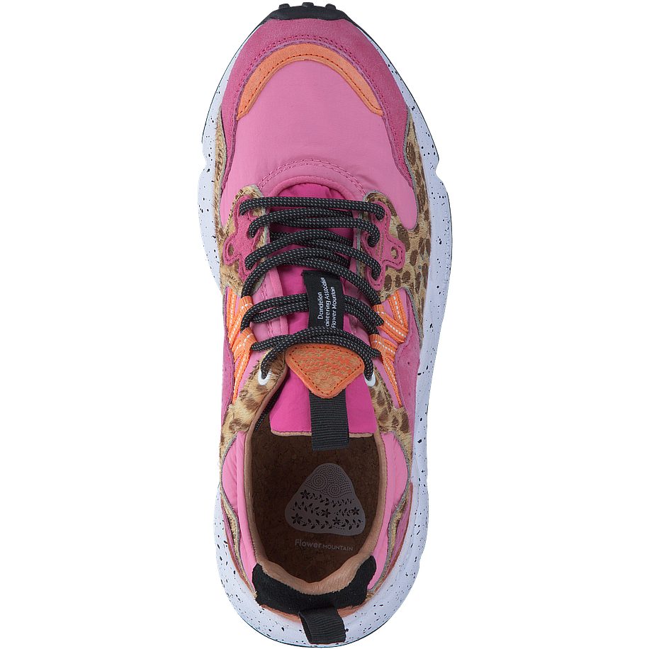 Entdecken Sie den YAMANO Sneaker von Flower Mountain in den Farben Pink und Orange. Dieser Schuh für Damen ist ein echter Hingucker mit seinem auffälligen Leo-Print. Der 4 cm hohe Absatz sorgt für einen eleganten Auftritt, während das Obermaterial aus Leder und Textil eine hohe Qualität und Langlebigkeit garantiert. Das Innenfutter aus Textil, Leder und sonstigem Material sorgt für optimalen Tragekomfort. Die Innensohle aus sonstigem Material und die Sohle aus Gummi bieten hervorragende Dämpfung und Stabilität. Ein modischer und komfortabler Sneaker für jeden Tag.