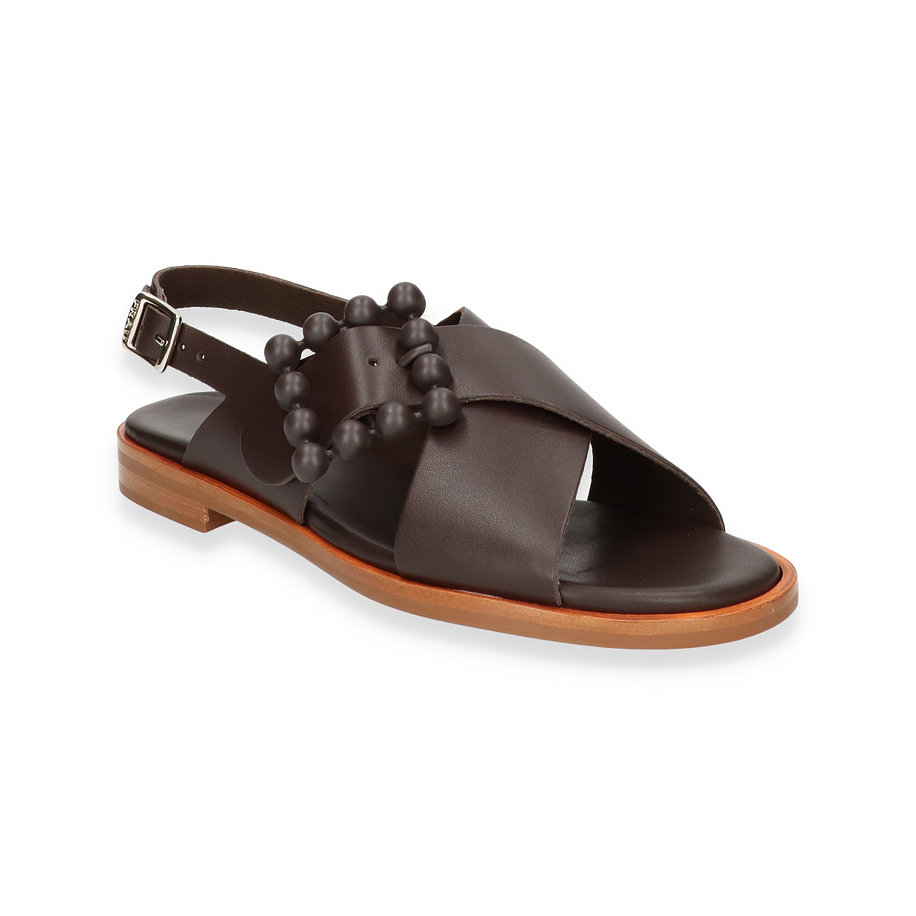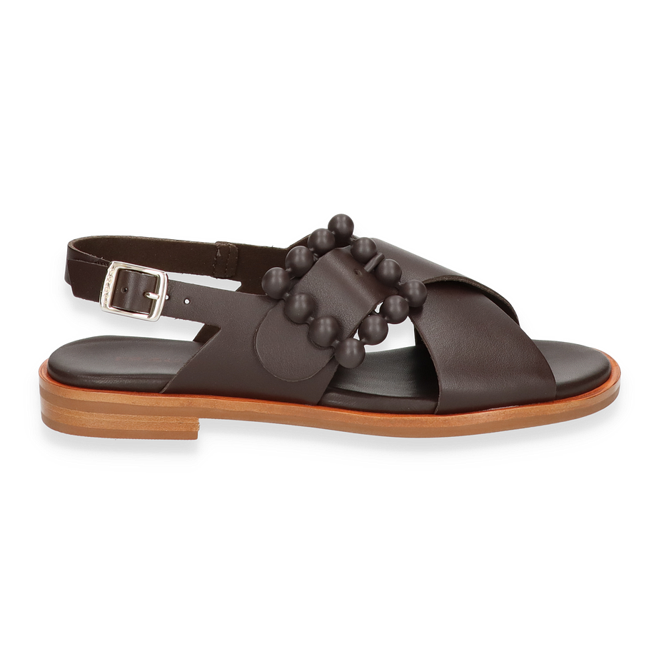 Preis inkl. MwSt.Entdecken Sie die exquisiten Sandalen von FRAU für Damen, die durch ihr elegantes Design in Dunkelbraun bestechen. Die gekreuzten Lederbänder verleihen den Sandalen eine raffinierte Optik, während die dekorativen Kugeln einen einzigartigen Akzent setzen. Der verstellbare Riemen sorgt für optimalen Halt und Komfort, ideal für stilvolle Sommerabende oder entspannte Spaziergänge.
