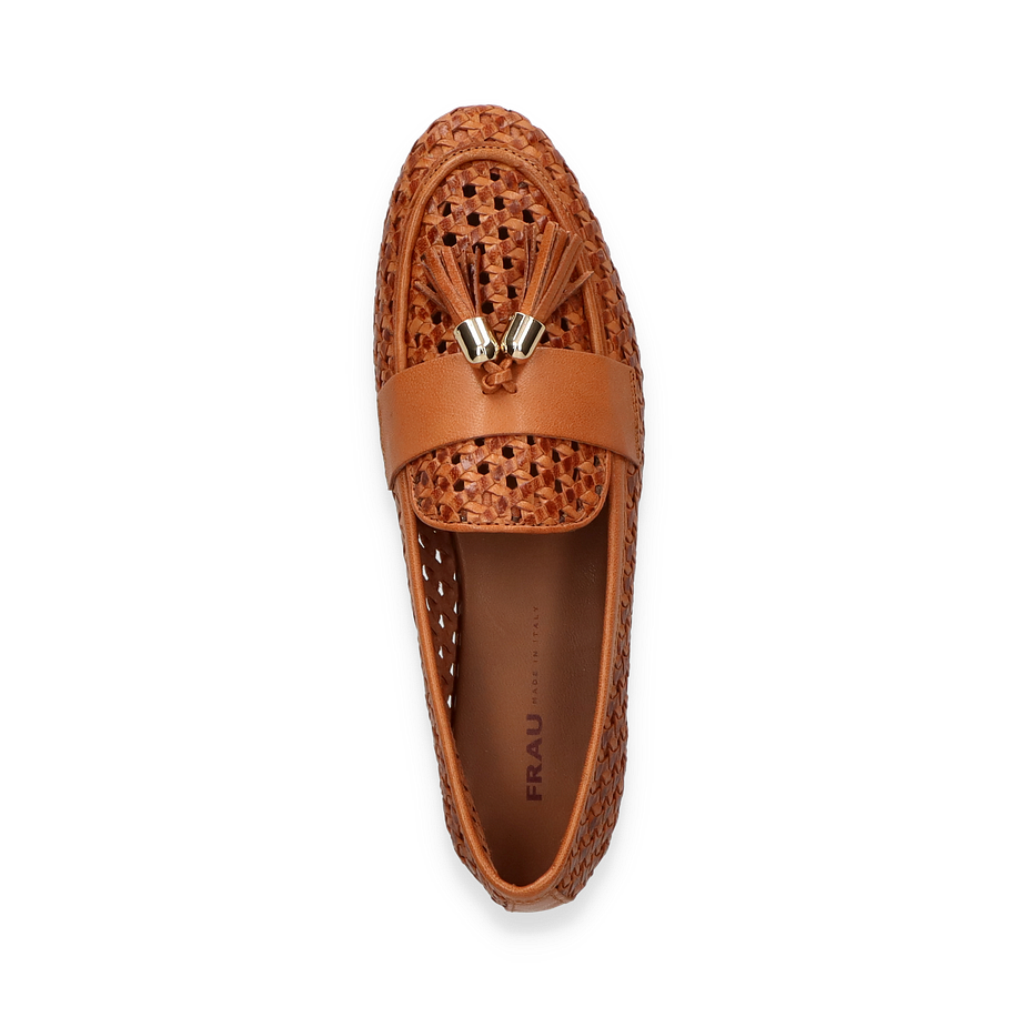 Preis inkl. MwSt.Entdecken Sie den eleganten Slipper von FRAU in einem ansprechenden Hellbraunton, der durch sein raffiniertes Design besticht. Das geflochtene Muster des Obermaterials aus hochwertigem Leder verleiht dem Schuh eine einzigartige Textur und einen Hauch von Exklusivität. Die dekorativen Quasten und das subtile Gold-Detail auf der Oberseite setzen stilvolle Akzente, die diesen Slipper zu einem unverzichtbaren Accessoire für Damen machen. Der flache Absatz sorgt für einen komfortablen Auftritt, während die geschmackvolle Farbgebung vielseitig kombinierbar ist.