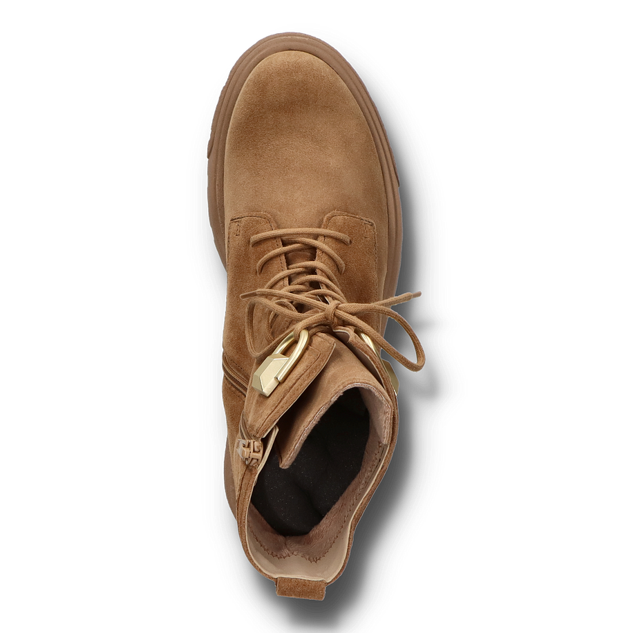 Diese eleganten Gabor Boots für Damen in der Farbe Hellbraun sind die perfekte Ergänzung für Ihre Herbst- und Wintergarderobe. Das hochwertige Lederobermaterial verleiht den Schuhen nicht nur eine edle Optik, sondern sorgt auch für Langlebigkeit und Komfort. Die robuste Gummisohle bietet hervorragende Traktion und Stabilität, während die 4,5 cm hohe Absatzhöhe einen Hauch von Eleganz und zusätzlichen Halt bietet. Die Schnürung und die goldfarbenen Details an der Seite verleihen den Boots einen modernen und stilvollen Look. Die Innenmaterialien der Gabor Boots bestehen aus weichem Textil, das für ein angenehmes Tragegefühl sorgt. Die Textil-Innensohle bietet zusätzlichen Komfort und unterstützt den Fuß bei jedem Schritt. Diese Boots sind ideal für den täglichen Gebrauch und lassen sich vielseitig kombinieren, um sowohl lässige als auch schicke Outfits zu ergänzen.