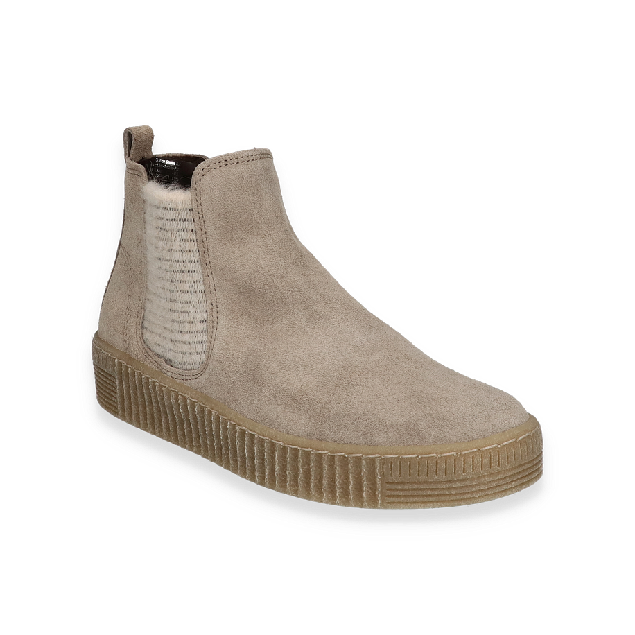 Entdecken Sie die eleganten Gabor Boots für Damen in einem stilvollen Beige-Ton. Diese Schuhe vereinen zeitloses Design mit modernem Komfort und sind ideal für den täglichen Gebrauch. Das Obermaterial aus hochwertigem Leder verleiht den Boots eine luxuriöse Ausstrahlung, während die subtile Struktur und die elastischen Einsätze an den Seiten für eine perfekte Passform sorgen. Die robuste Gummisohle bietet nicht nur hervorragende Stabilität, sondern auch einen modischen Akzent durch ihr markantes Profil.
