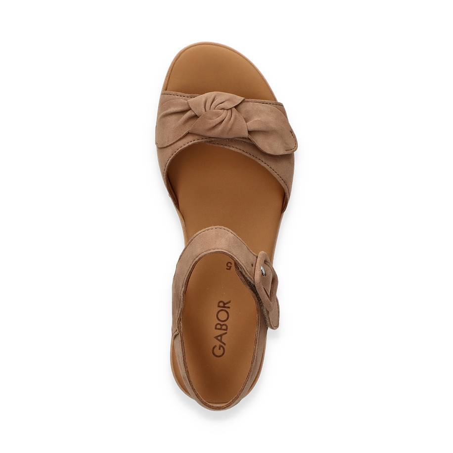 Preis inkl. MwSt.Entdecken Sie die eleganten Plateau-Sandalen von Gabor in einem ansprechenden Hellbraun, die für Damen entworfen wurden. Diese stilvollen Sandalen zeichnen sich durch ihr raffiniertes Design mit einem charmanten Knoten auf dem Vorderfußriemen aus. Der verstellbare Knöchelriemen mit Schnalle sorgt für eine perfekte Passform und zusätzlichen Halt. Die 4,5 cm hohe Plateausohle verleiht nicht nur Höhe, sondern auch einen modernen Touch, der sich ideal für verschiedene Anlässe eignet.