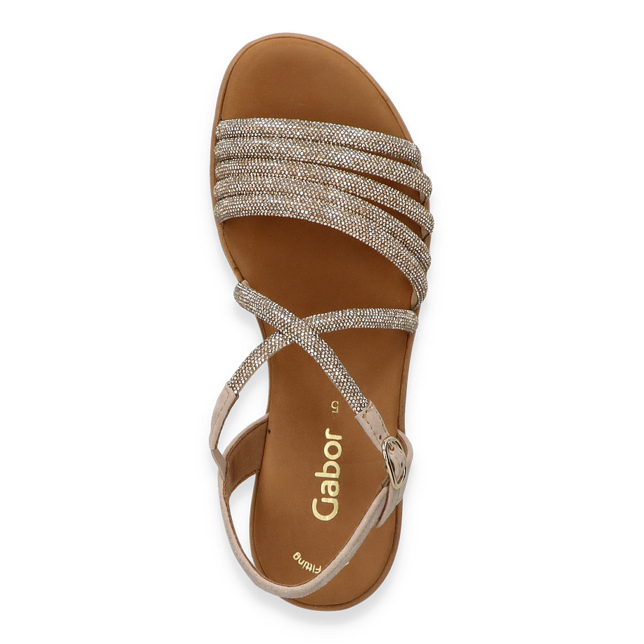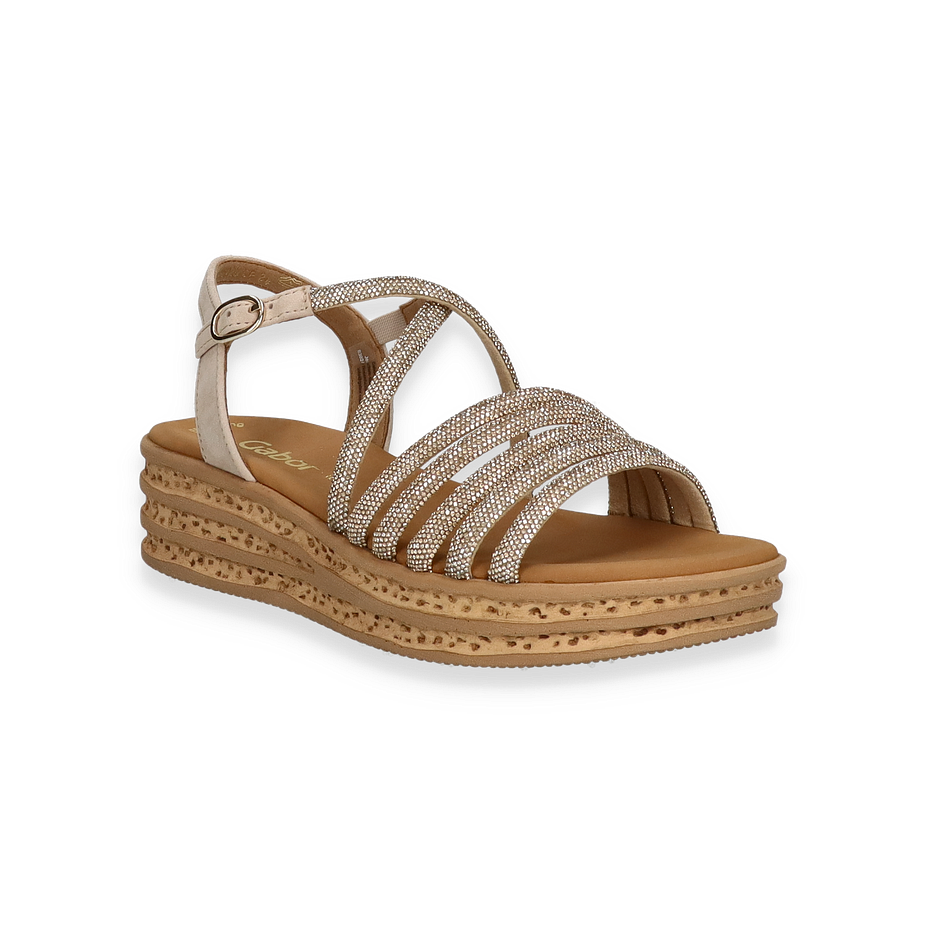 Preis inkl. MwSt.Entdecken Sie die eleganten Gabor Sandalen für Damen in einem stilvollen Beige. Diese Sandalen zeichnen sich durch ein raffiniertes Design mit funkelnden Riemen aus, die jedem Outfit einen Hauch von Glamour verleihen. Der verstellbare Riemen sorgt für eine perfekte Passform, während die mehrschichtige Sohle nicht nur optisch ansprechend ist, sondern auch für zusätzlichen Komfort sorgt. Diese Sandalen sind ideal für sommerliche Anlässe und bieten eine harmonische Kombination aus Stil und Funktionalität.