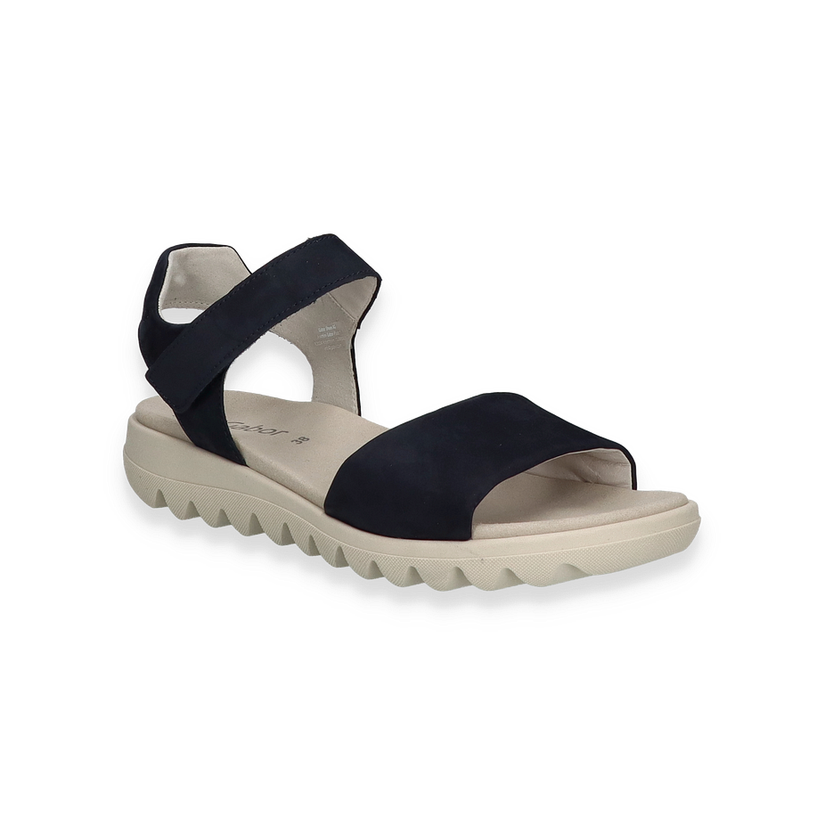 Entdecken Sie die eleganten Gabor Sandalen für Damen in einem stilvollen Dunkelblau. Diese Sandalen vereinen modernes Design mit höchstem Tragekomfort. Der breite Riemen aus hochwertigem Leder sorgt für einen sicheren Halt, während die dezente Absatzhöhe von 3 cm eine angenehme Silhouette bietet. Die wellenförmige Sohle verleiht nicht nur einen modischen Akzent, sondern bietet auch hervorragende Bodenhaftung.