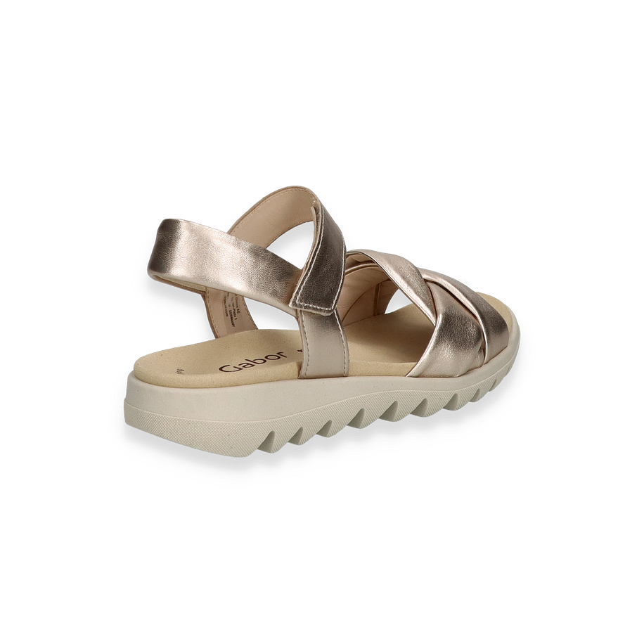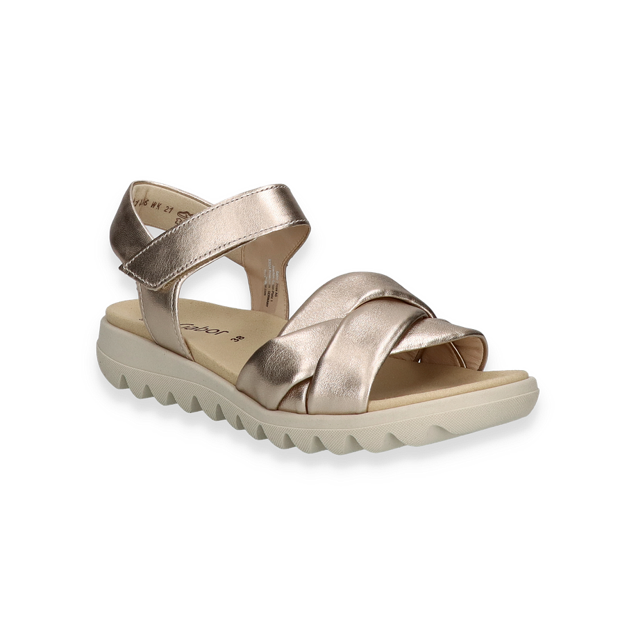 Preis inkl. MwSt.Entdecken Sie die eleganten Gabor Sandalen für Damen in einem glänzenden Goldton. Diese stilvollen Sandaletten zeichnen sich durch ein raffiniertes Design mit überkreuzten Riemen aus, die sowohl Komfort als auch einen sicheren Halt bieten. Der dezente Glanz des goldenen Leders verleiht jedem Outfit einen Hauch von Luxus, während die robuste Sohle mit ihrem modernen Profil für Stabilität sorgt.