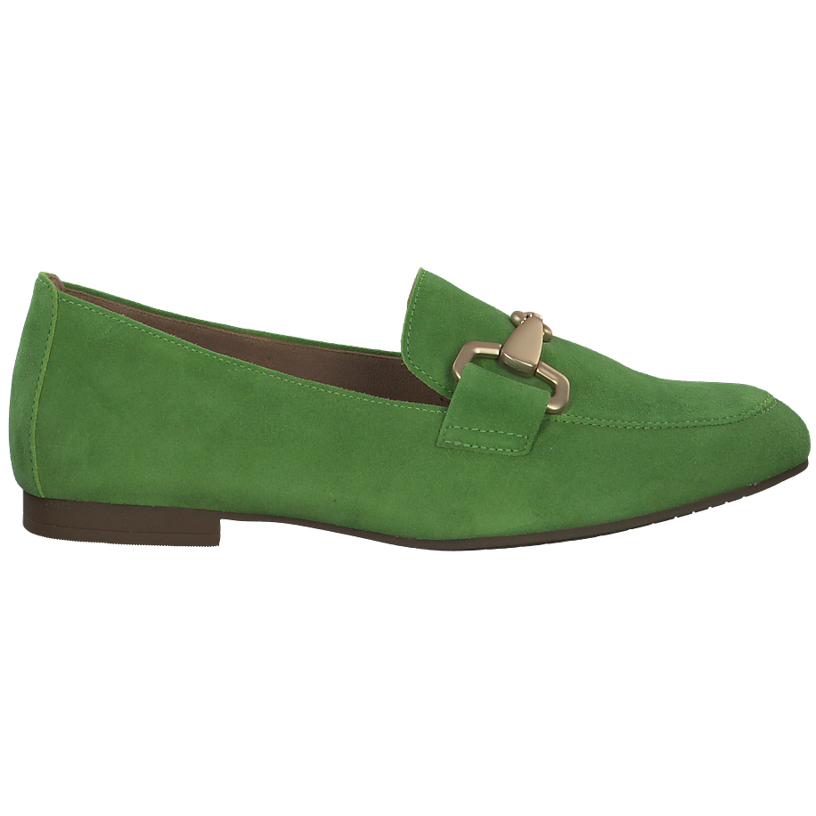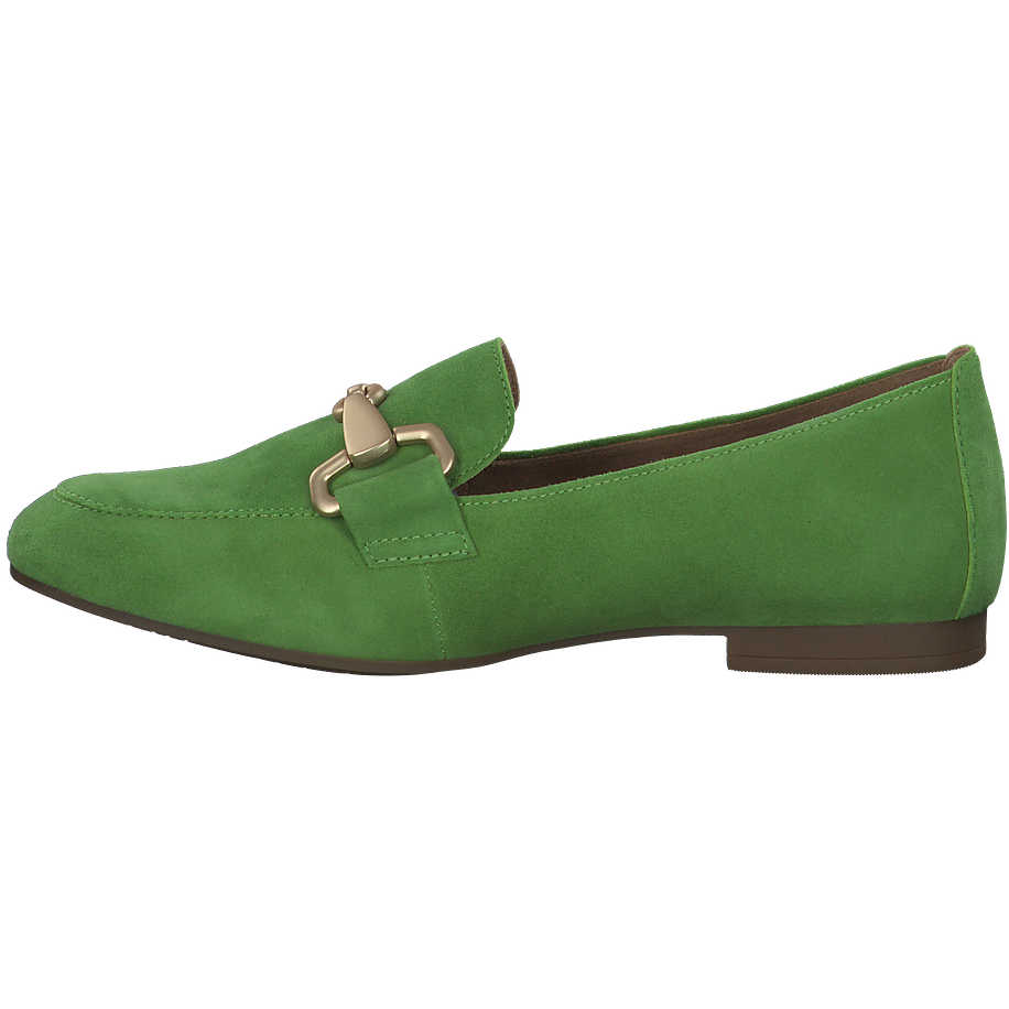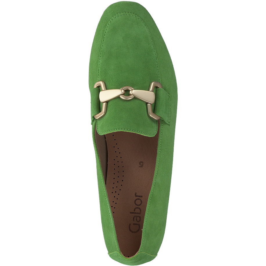 Preis inkl. MwSt.Entdecken Sie die stilvollen Slipper von Gabor in der Farbe Grün. Diese eleganten Schuhe für Damen sind aus hochwertigem Leder gefertigt und bieten dank der Innensohle aus Leder und dem Futter aus Leder und Textil einen hohen Tragekomfort. Die Sohle aus Gummi sorgt für optimale Rutschfestigkeit. Mit einer Absatzhöhe von 1,5 cm und einer goldenen Zierschnalle als Hingucker, sind diese Ballerinas die perfekte Ergänzung für jedes Outfit. Verleihen Sie Ihrem Look mit diesen Gabor Ballerinas einen Hauch von Eleganz und Komfort.