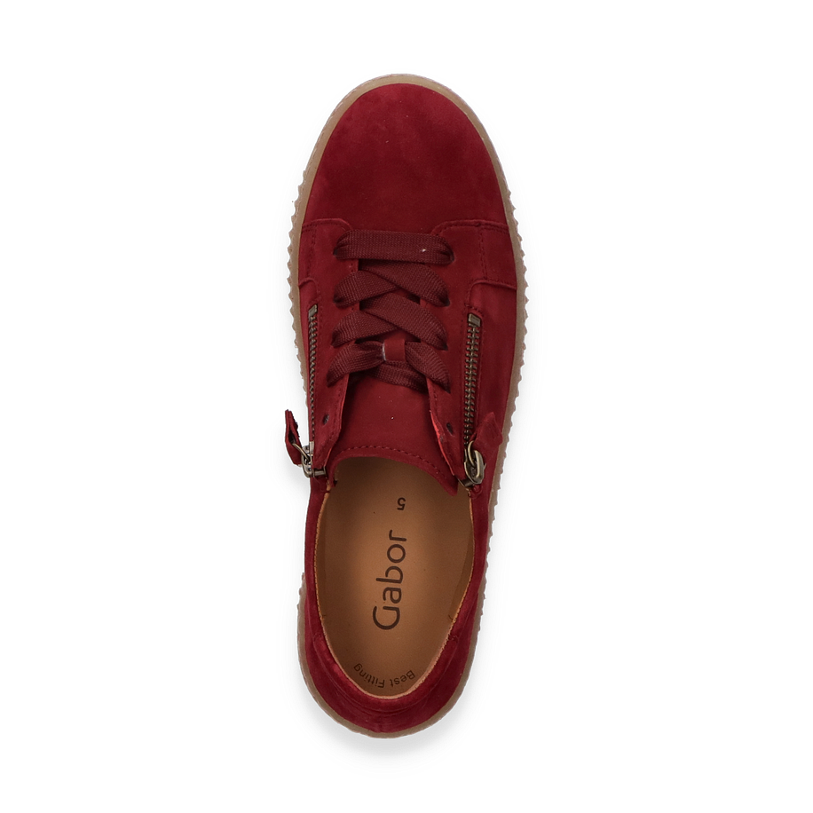 Entdecken Sie die eleganten Schnürschuhe von Gabor in einem tiefen Bordeaux-Ton, der jedem Outfit eine raffinierte Note verleiht. Diese für Damen entworfenen Schuhe zeichnen sich durch ihr stilvolles Design und die praktische seitliche Reißverschluss-Detail aus, das sowohl Funktionalität als auch modischen Flair bietet. Die robuste Gummisohle sorgt für einen sicheren Halt, während die dezente Absatzhöhe von 3,5 cm eine angenehme Erhöhung bietet.