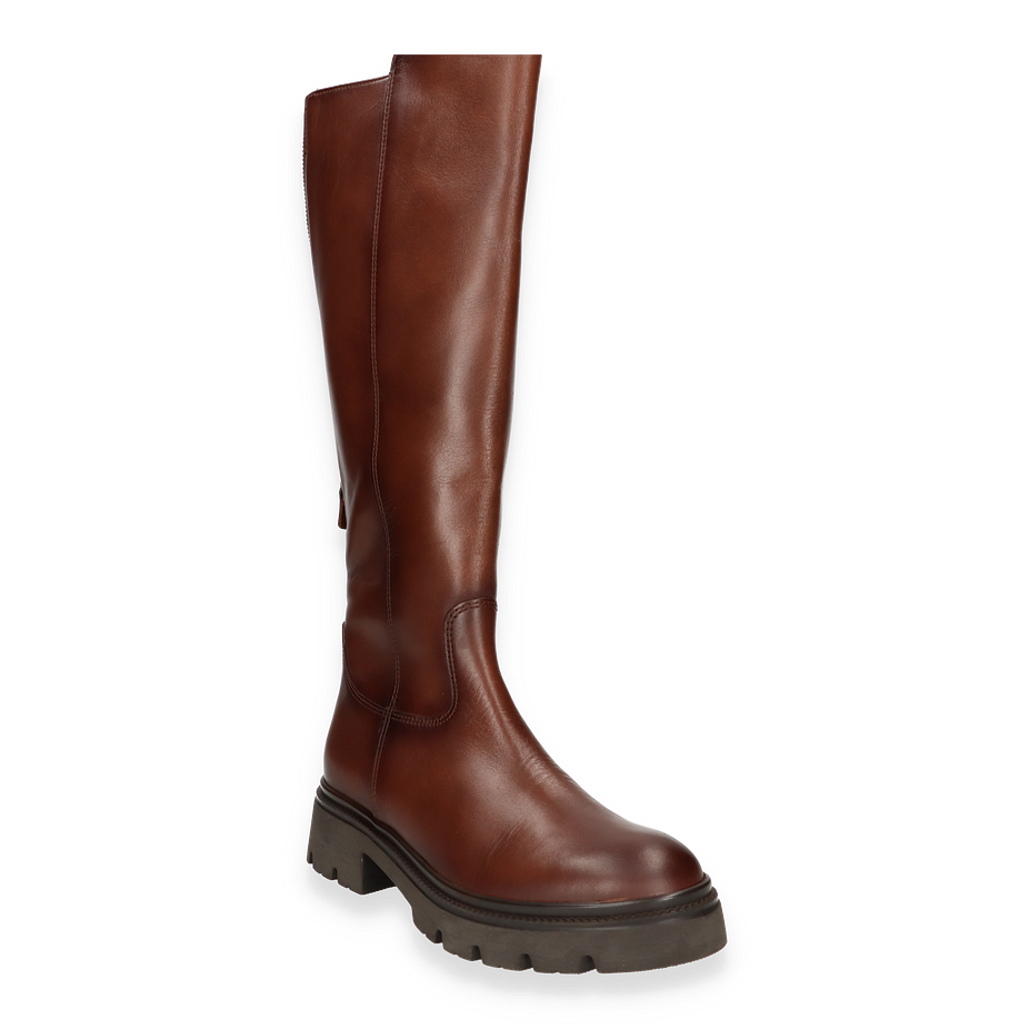 Der Gabor Stiefel für Damen in Mittelbraun präsentiert sich in einem eleganten und zeitlosen Design. Gefertigt aus hochwertigem Leder, bietet der Stiefel eine glatte und ansprechende Oberfläche, die durch die dezente Nahtführung akzentuiert wird. Der Stiefel reicht bis knapp unter das Knie, was durch die Schafthöhe von 39 cm gewährleistet wird, und verleiht jedem Outfit eine stilvolle Note. Der robuste Gummisohle sorgt für einen sicheren Halt, während der 4 cm hohe Absatz eine feminine Silhouette unterstreicht.