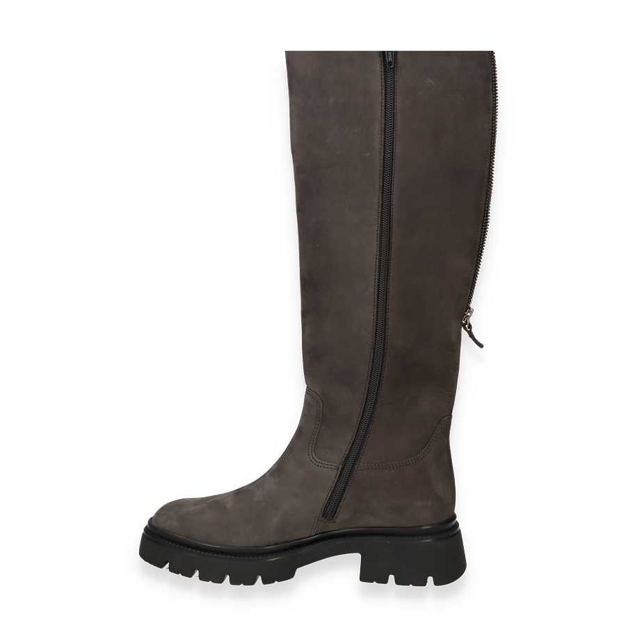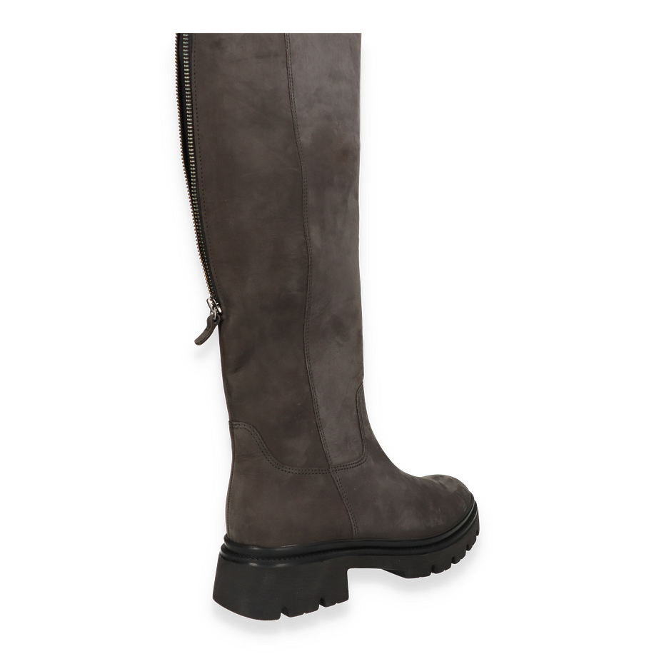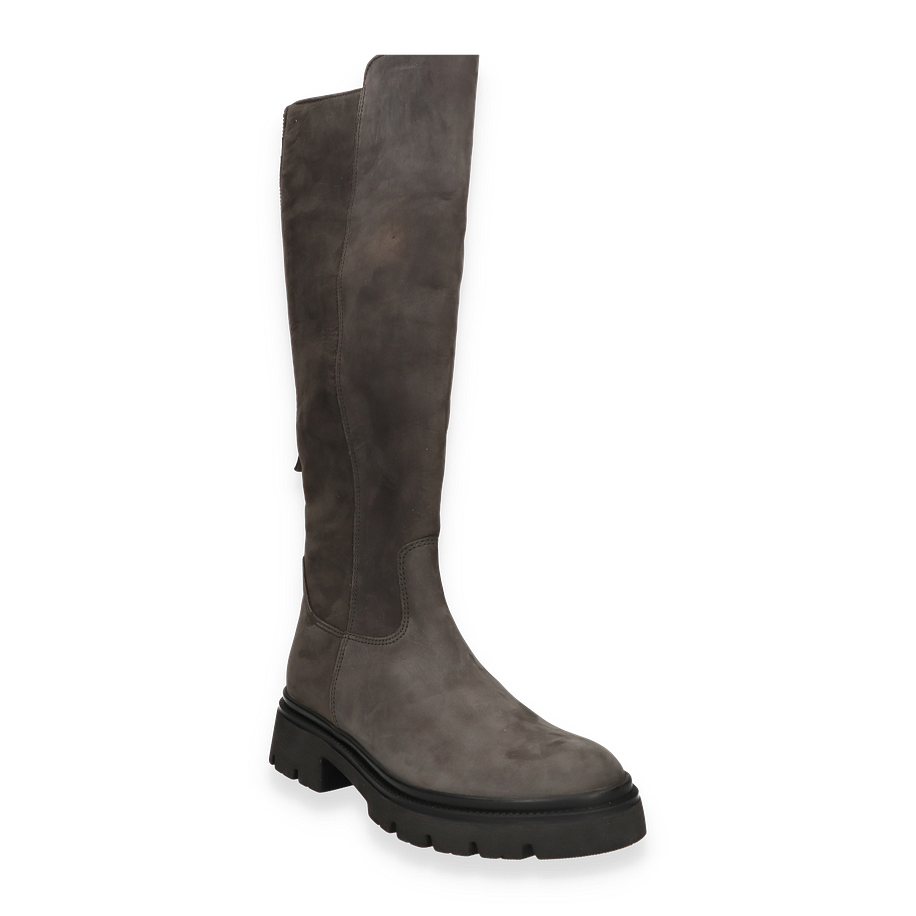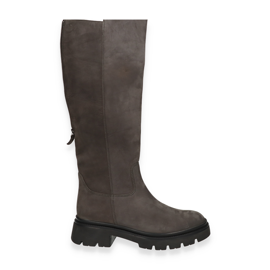 Entdecken Sie den eleganten Stiefel für Damen, der durch sein schlichtes und dennoch anspruchsvolles Design besticht. Der Stiefel präsentiert sich in einem edlen Grauton, der vielseitig kombinierbar ist und jedem Outfit eine stilvolle Note verleiht. Die hohe Schaftlänge und die klare Linienführung unterstreichen die zeitlose Eleganz dieses Modells, während die robuste Sohle für einen sicheren Auftritt sorgt. Der seitliche Reißverschluss ermöglicht ein bequemes An- und Ausziehen.