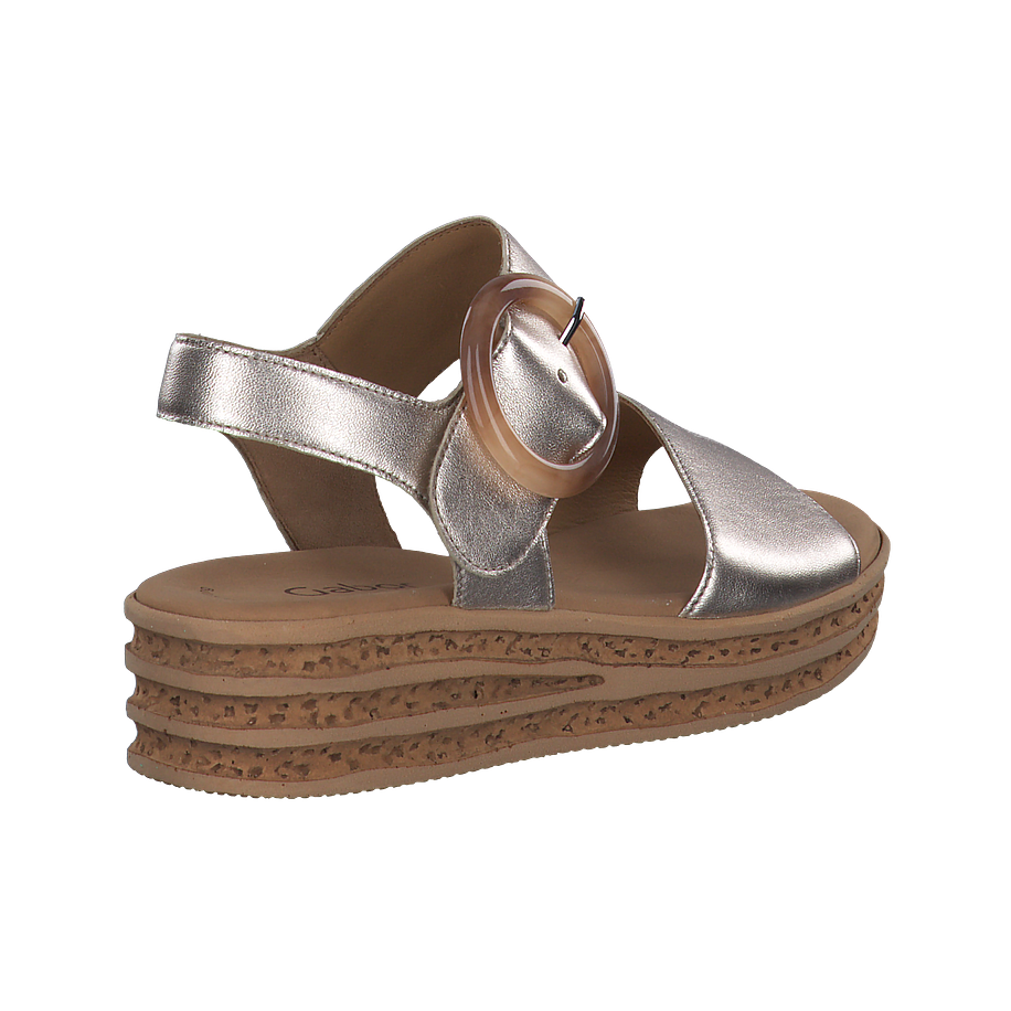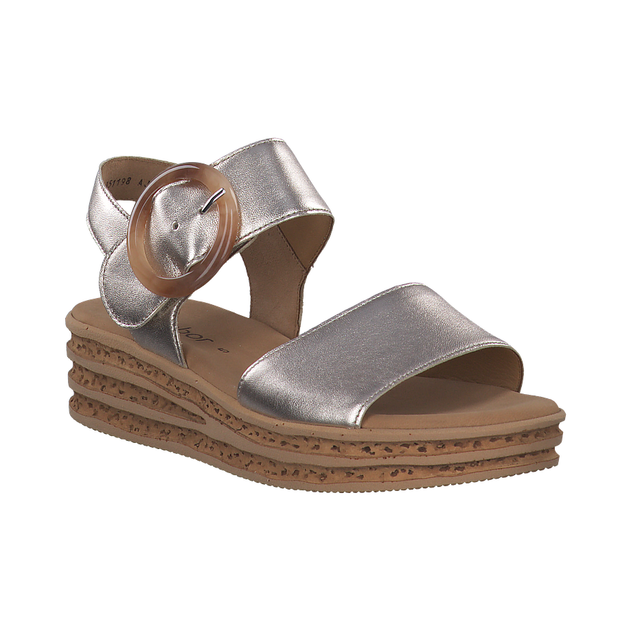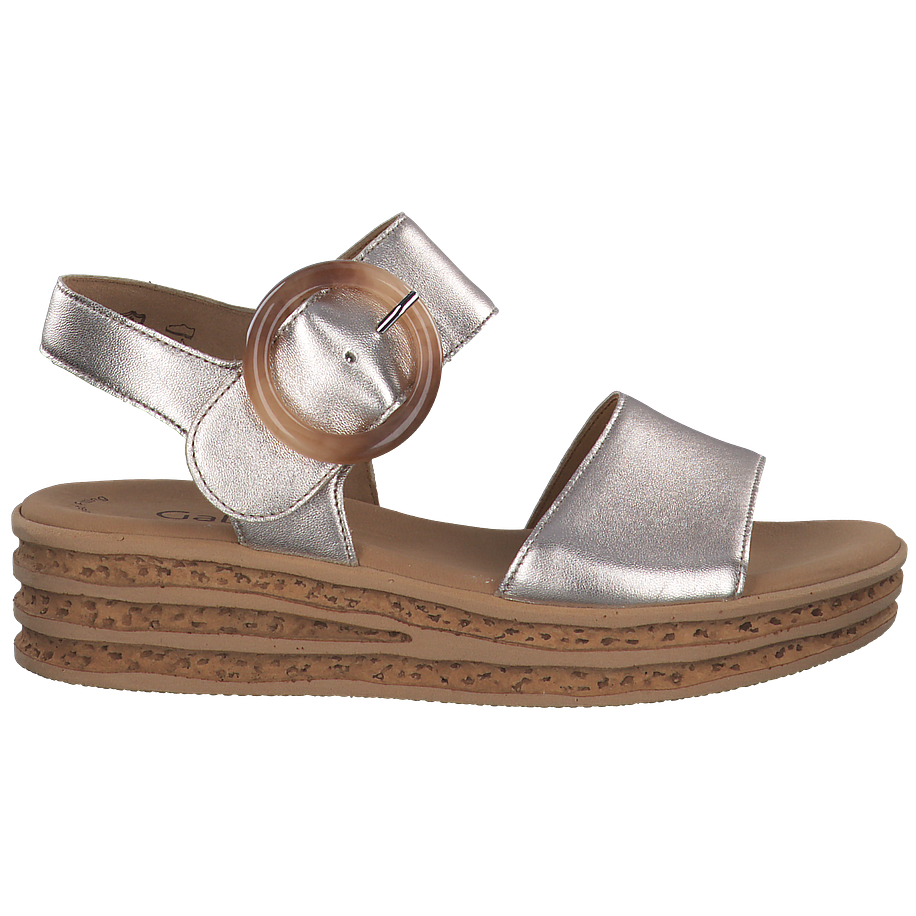 Entdecken Sie die eleganten Gabor Wedges in der Farbe Rosegold. Diese stilvollen Schuhe für Damen sind aus hochwertigem Leder gefertigt und bieten dank des Ledereinsatzes und der Gummisohle optimalen Komfort. Sie verfügen über eine Absatzhöhe von 4,5 cm und eine Plateauhöhe von 2,5 cm, die für eine schmeichelhafte Silhouette sorgen. Ein weiteres Highlight ist die runde Schnalle zum Einstieg, die dem Schuh einen zusätzlichen Hauch von Eleganz verleiht. Mit diesen Gabor Wedges machen Sie bei jedem Anlass eine gute Figur.