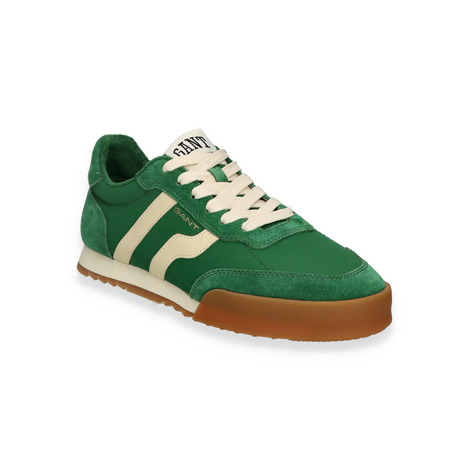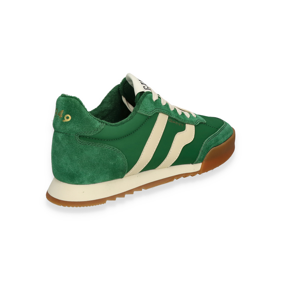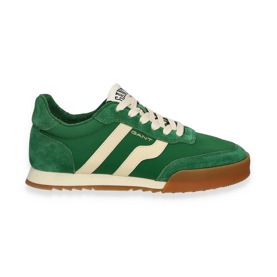 Preis inkl. MwSt.Der Gant BAYLLE Sneaker für Herren präsentiert sich in einem stilvollen Dunkelgrün, das durch die kontrastierenden weißen Akzente perfekt ergänzt wird. Das Obermaterial aus Leder und Textil verleiht dem Schuh eine edle Optik und sorgt für Langlebigkeit. Die sorgfältig gestalteten Details und die hochwertige Verarbeitung machen diesen Sneaker zu einem Must-Have für modebewusste Männer. Die klassische Silhouette und das dezente Branding auf der Zunge und Seite unterstreichen den zeitlosen Charakter dieses Modells.