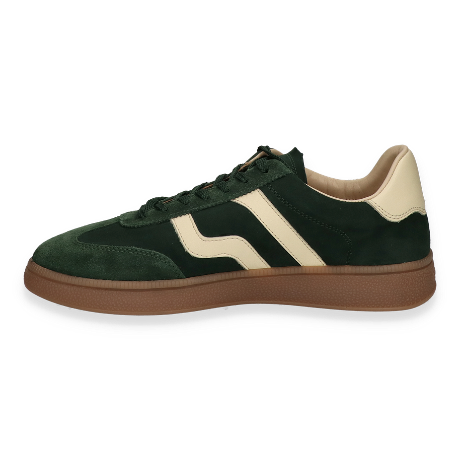 Der GANT Sneaker CUZMO für Herren präsentiert sich in einem eleganten Dunkelgrün, das durch dezente cremefarbene Akzente stilvoll ergänzt wird. Das Obermaterial aus hochwertigem Leder verleiht dem Schuh nicht nur eine edle Optik, sondern auch eine langlebige Qualität. Die sorgfältig gestalteten Details und die harmonische Farbkombination machen diesen Sneaker zu einem vielseitigen Begleiter für verschiedene Anlässe. Die klassische Silhouette und das markante Design unterstreichen den zeitlosen Charakter dieses Modells.