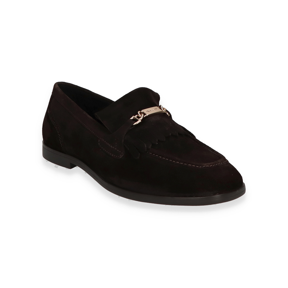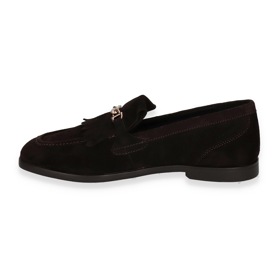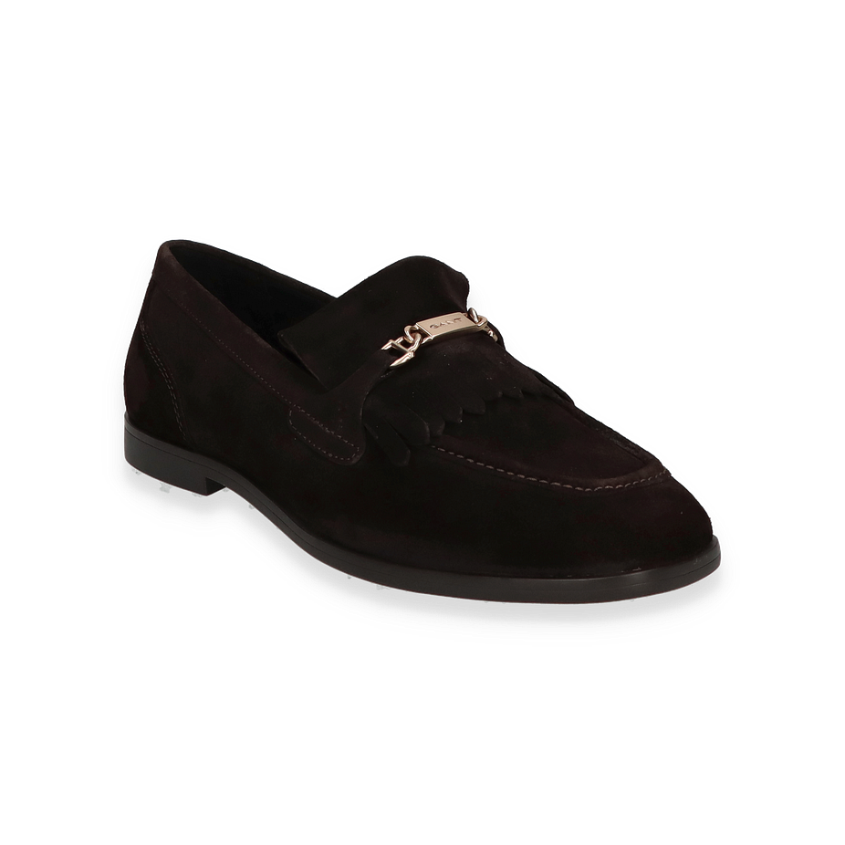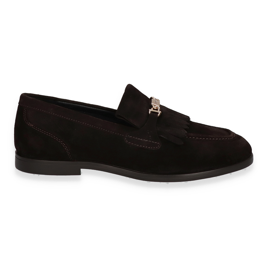 Preis inkl. MwSt.Der GANT GIMBLE Slipper für Damen präsentiert sich in einem eleganten Dunkelbraun, das zeitlose Raffinesse ausstrahlt. Die feine Verarbeitung des Leders verleiht dem Schuh eine luxuriöse Optik, während die dezente Verzierung auf dem Obermaterial für einen stilvollen Akzent sorgt. Die klassische Silhouette wird durch die sorgfältig gestalteten Details und die hochwertige Verarbeitung unterstrichen, was diesen Schuh zu einem idealen Begleiter für anspruchsvolle Anlässe macht.